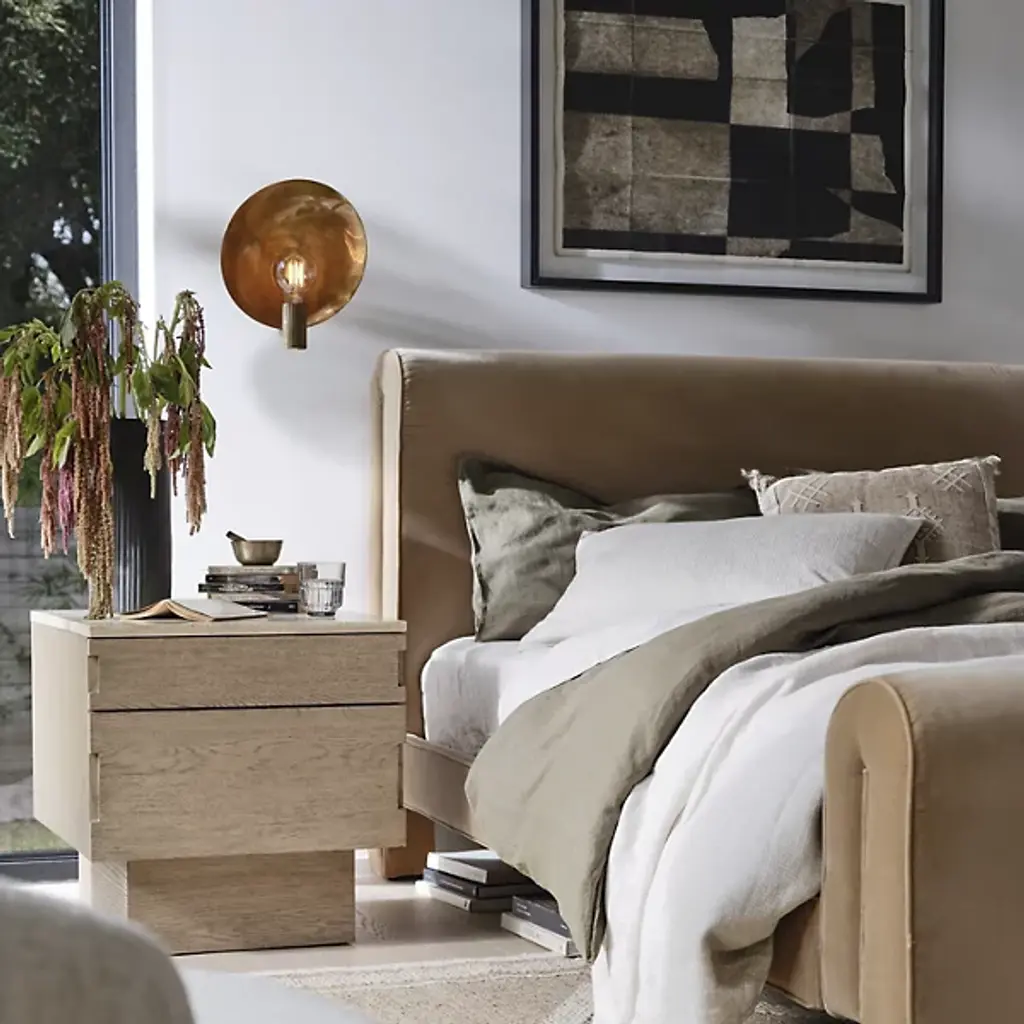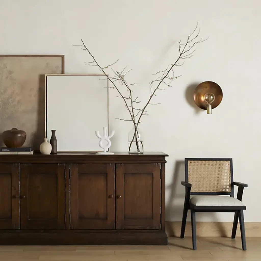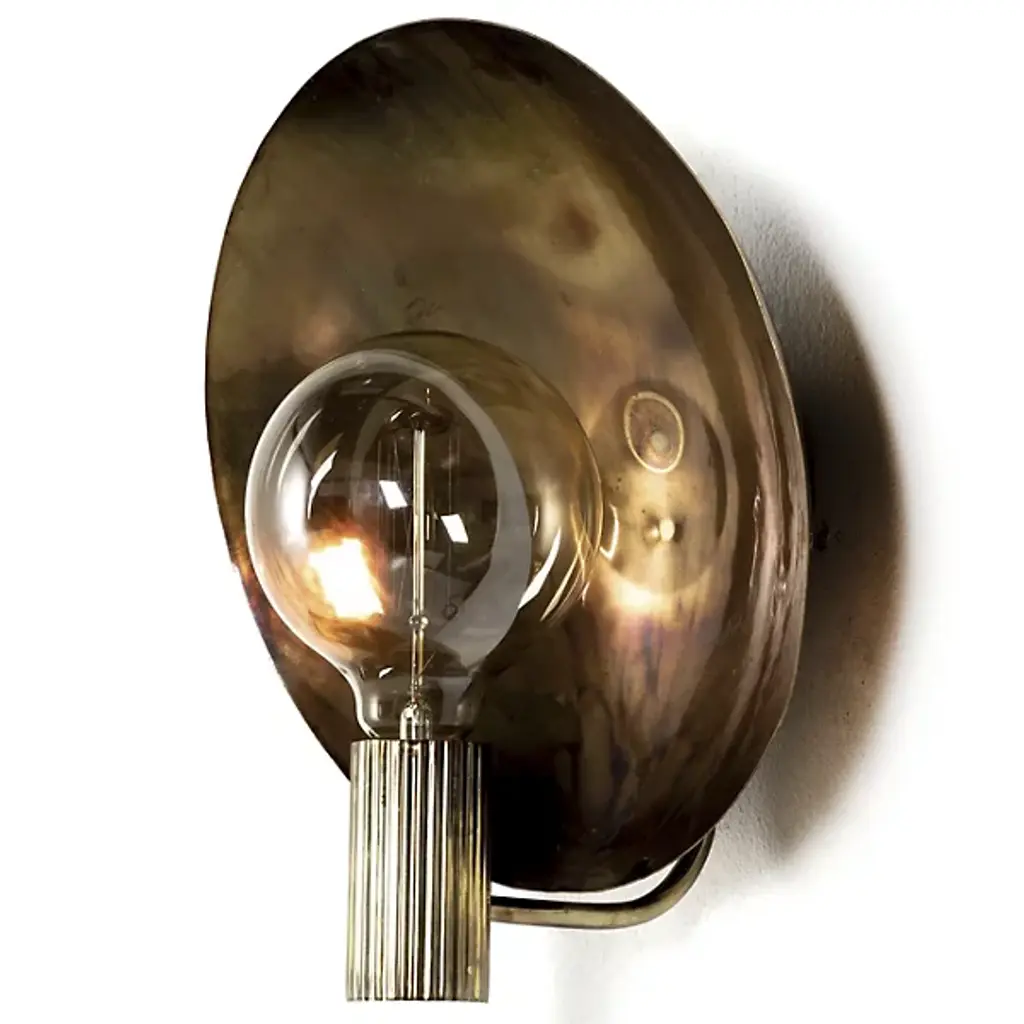 The Lund Wall Sconce from Four Hands puts metalsmithing in focus with an ultra-refined design inspired by the Scandinavian designs of the 1950s. It’s a simple yet poetic piece, mounting to one’s wall with a floating quality. Made from real brass, the large reflecting plate creates a crisp, circular outline around the lamping. The lamping sits atop a fluted brass holder that catches the eye with fine linear detail. The bare bulb design glazes the plate with a golden hue as it beams out a nurturing glow.