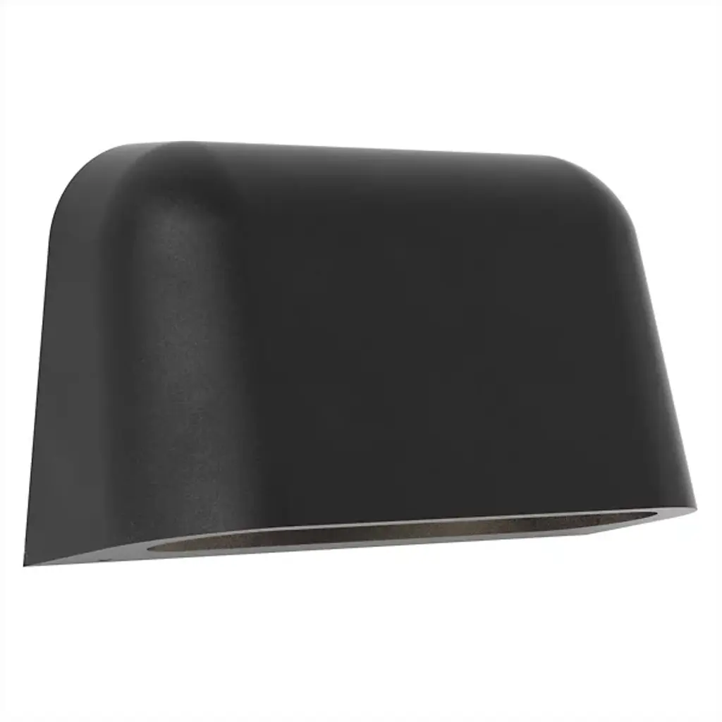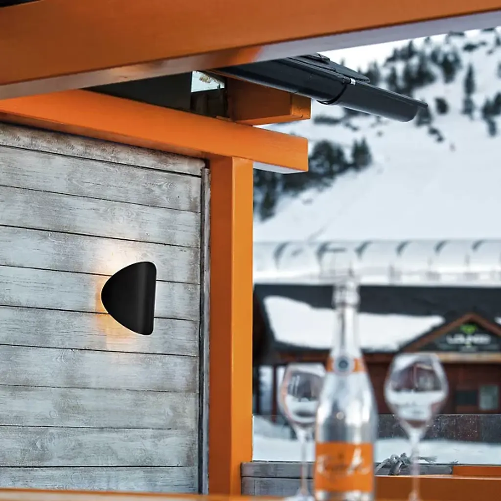 The Estiluz Lune Outdoor LED Wall Sconce keeps things simple, featuring a solid aluminum front plate that sits convex to the wall. The outer shade shields the interior acrylic diffuser, allowing light to shine freely from the top and bottom of the fixture. Suited for outdoor environments, the Lune is a great way to line the outside of a home or walkway discreetly. As a special order option only, the Lune can also be customized with laser cut signage.