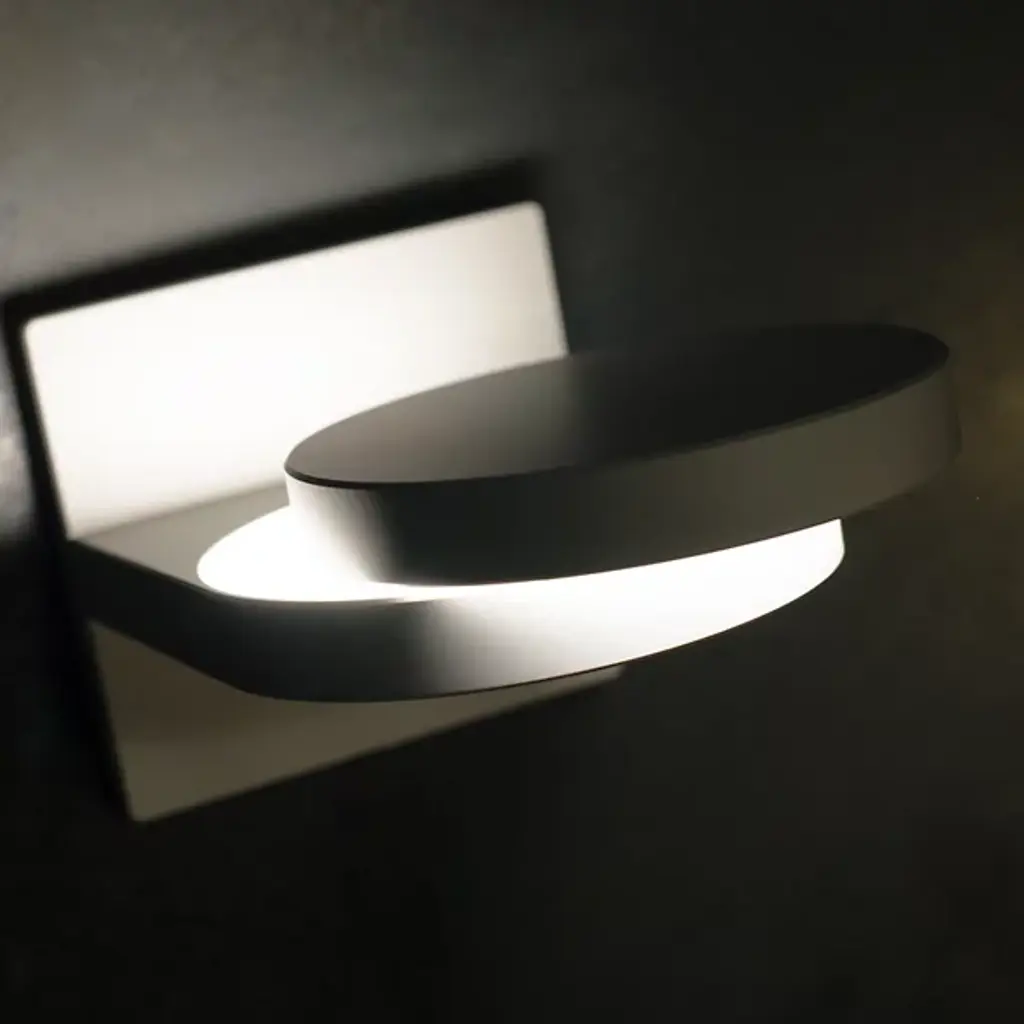 The Lune LED Wall Sconce by Tomnuk Design is a dynamic fixture that evolves with a space's needs. Designed by Jordan Tomnuk, the concept of this piece was developed by looking at ways to manually manipulate lighting in spaces and how these actions result in a universal product and a more in-tune environment. In geometry, the crescent shape formed by two intersecting circles is called a lune, and the rotatable disc in this wall sconce provides an array of illumination options, creating this image as it reveals more or less of itself through its journey. Minimal and modern, this design is an adaptable, functional, and handsome addition to areas needing a thoughtful source of light.