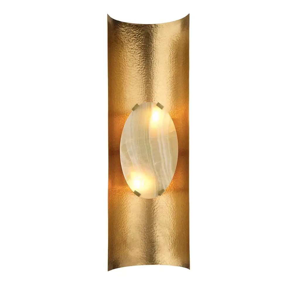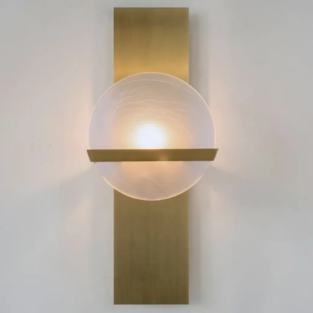 A soothing glow complemented by a sculptural artistic element. The Lunette 3-Prong Rectangular Wall Sconce by Ridgely Studio exudes a contemporary elegance and allure, courtesy of a gold rolled steel body and exquisite arms that hold the striking glass diffuser in place. This sconce also comes in multiple textures and finishes to match any established décor scheme and the candelabra base socket is compatible with both incandescent and LED retrofit bulbs for a customized illumination.