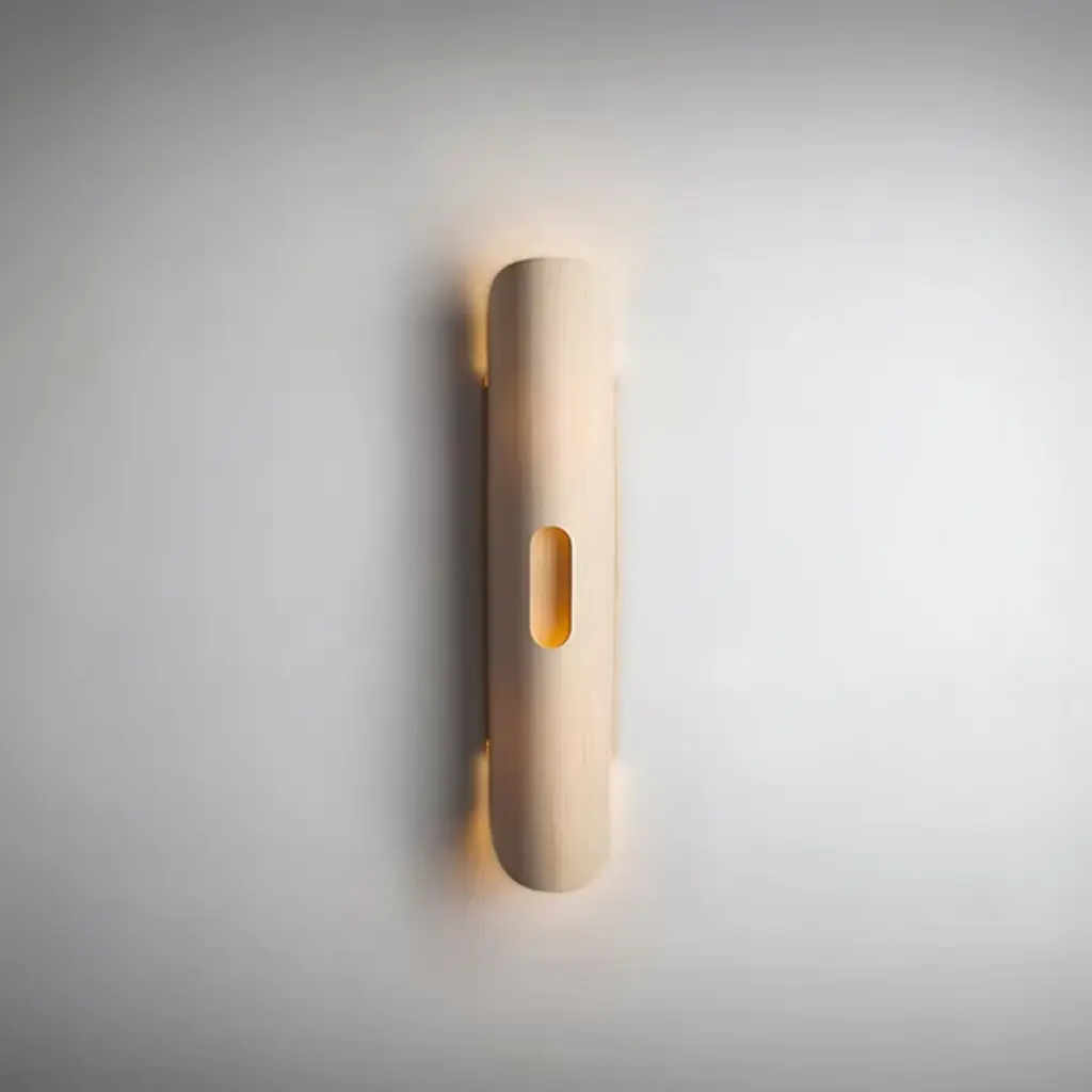 Refined, minimalist lines paired with organic texture. As part of the WEP (Wood Ecological Project), the Lupe Wall Sconce by Bruck Lighting uses that natural material to elegant, modern effect. The shade is a panel of wood veneer that’s bent into a tall half-oval around the wall plate. A notch in the front allows for the interior wood color to show through and for a peek of ambient light to shine around a living room or dining area.