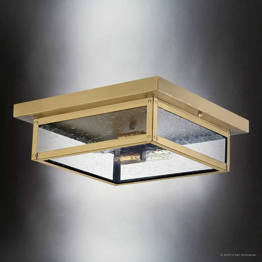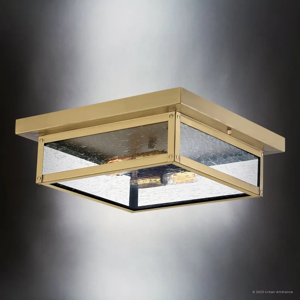 THE QUINCY COLLECTION:The Quincy collection exudes an air of efficiency as it gives rise to impressive versatility. Featuring stainless steel, steel, and brass constructions, these fixtures will fit seamlessly into a variety of outdoor spaces.A hallmark of modern design is an intelligent integration of crisp lines and full-length clear glass details. The elongated rectangular framework of these fixtures pairs nicely with the glass to subtly expose the sheltered detail. The shade adopts beveled glass and seedy glass in both vertical and horizontal alignment. The oversized framework enhances the bulbs and creates the illusion of a voluminous diffusion.Available in Natural Black, Antique Brass, Estate Bronze, and Stainless Steel in a variety of fixture install locations including wall sconces, post lights, pendant lights, and ceiling lights.PRODUCT INFORMATION:MODEL NUMBER: BWQ5163, UQL5163PRODUCT COLLECTION: QuincyINSTALL LOCATION: IndoorFIXTURE TYPE: Ceiling LightFINISH: Antique BrassCONSTRUCTION MATERIAL: BrassABOUT THE DESIGN:DESIGN FEATURES: Unique GlassSHADE CHARACTERISTICS: Clear Beveled GlassFIXTURE FORM/SHAPES: SquareFINISH TONES: GoldsELECTRICAL AND INSTALLATION:FIXTURE BODY: 4.00''H x 12.00''W x 12.00''DHANGING HEIGHT: N/ACEILING OR WALL PLATE DIMS: 12.00"W X 12.00"LFIXTURE WEIGHT (IN LBS): 5.00 lbsLOCATION RATING: Dry LocationsSLOPED CEILING COMPATIBLE: N/AREVERSIBLE (UP/DOWN) OPTION: NoVOLTAGE: 110/120 VNUMBER OF BULBS: Two (2), E12 Candelabra Base, 40W (Not Included)RECOMMENDED BULB SHAPE: B10COMPATIBILITY: LED and Dimmable BulbsSTYLE INFLUENCES:MODERN FARMHOUSE: Blends classic farmhouse elements with modern design, featuring clean lines, neutral colors, and rustic finishes.NEW TRADITIONAL: Updates classic design with modern elements, blending traditional forms with contemporary finishes and fabrics.TRANSITIONAL: Merges traditional and contemporary, balancing comfort and sophistication with a neutral palette.URBAN LOFT: Features open spaces, high ceilings, and a mix of industrial and contemporary elements, often in a city environment.