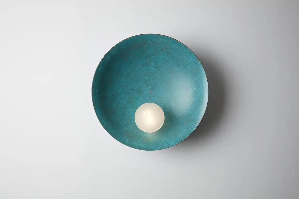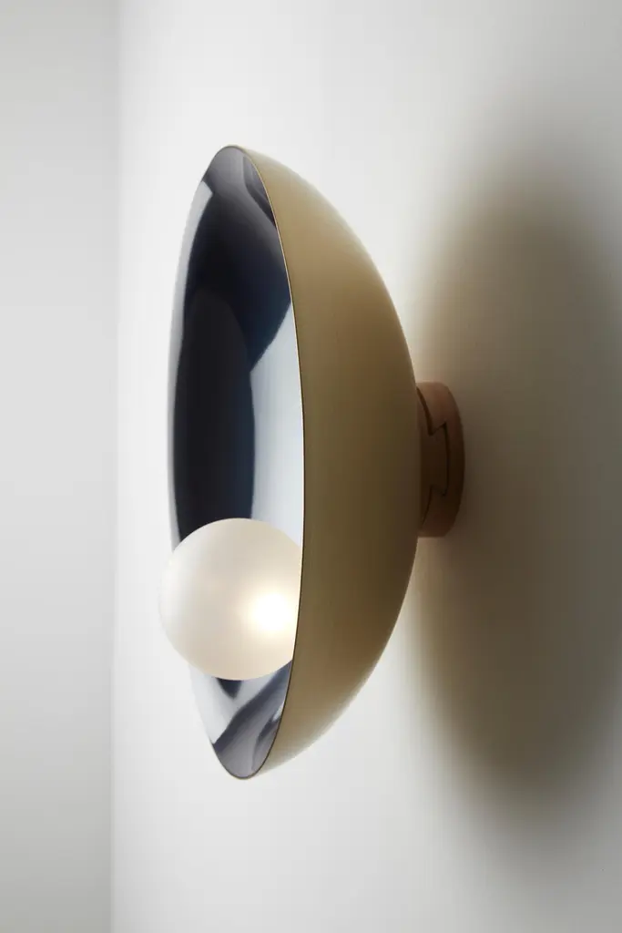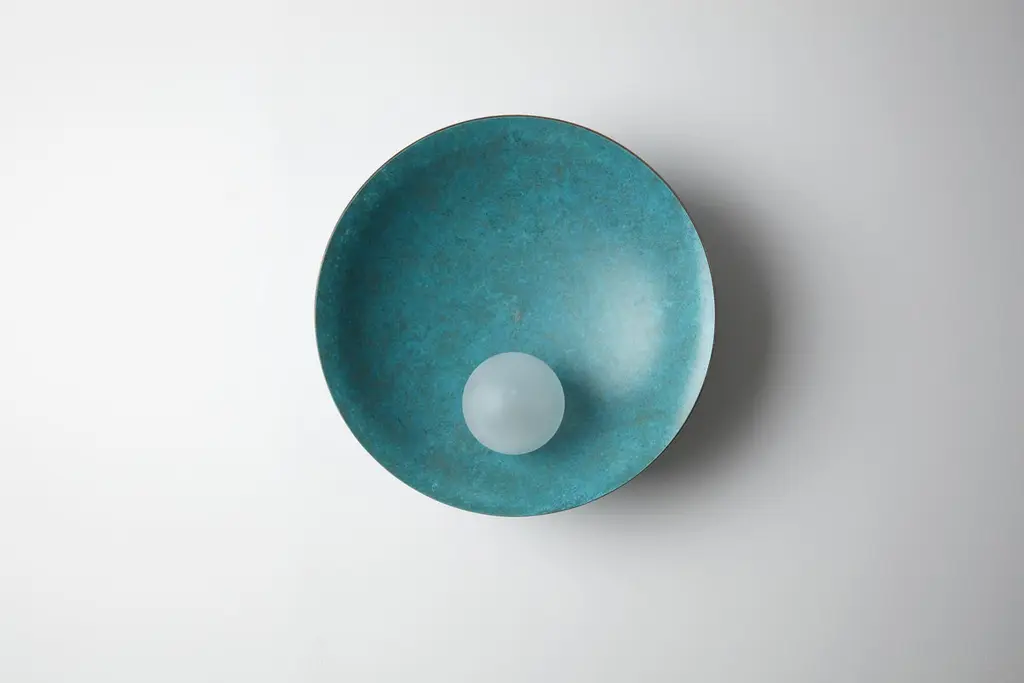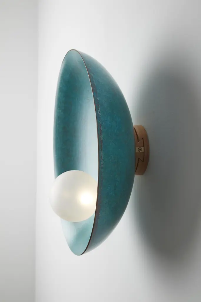 Luxury Modern Unique Midnight Blue Ceiling Wall Mounted Lamp Oyster by Carla BazDimensions: ø 40 x D 15 cm.Weight: 3.5 kgMaterial: Brass, Blown satin glass globes.Available in verdigris metal, brushed brass, copper or bronze finishes. Available in different color/ finish options. Please contact us.All our lamps can be wired according to each country. If sold to the USA it will be wired for the USA for instance.Oyster is a series of sculptural lighting pieces that were developed in 2016. Wanting to explore the IDEA of customization and adapting designs to different functionalities and scales, we developed this new series available in 3 different sizes and a selection of bold colors offering choices that are eccentric and personal.Carla Baz is a French-Lebanese designer dedicated to foster synergies between her innovative approach to furniture/lighting and the very accomplished skills of Lebanese artisans. After studying interior architecture at ESAG Penninghen in Paris, she pursued a Masters in product design for the luxury industry at the University of Art and Design Lausanne (ECAL) where she had the opportunity to work on several projects under the supervision of international designers such as Ronan Bouroullec, BarberOsgerby, Marti Guixé, Pierre Charpin and Umberto and Fernando Campana. She then engaged in diverse professional experiences, working in London for Burberry, Vivienne Westwood and Zaha Hadid until she felt it was time to explore her own lines. Thus began a very inspiring sequence of experiments which resulted in small editions of her sculptural and functional furniture and earned her the Brussels based Boghossian Fondation’s 2013 Design Prize. All her projects are rooted in that elaborate relationship where innovative ideas meet noble materials that are worked by hand. Within that journey to their process, unique and elegant products are born that hold their place in our landscape. Carla has recently been awarded the 'Rising Talent' award at Maison & Objet’s 2018 September edition.