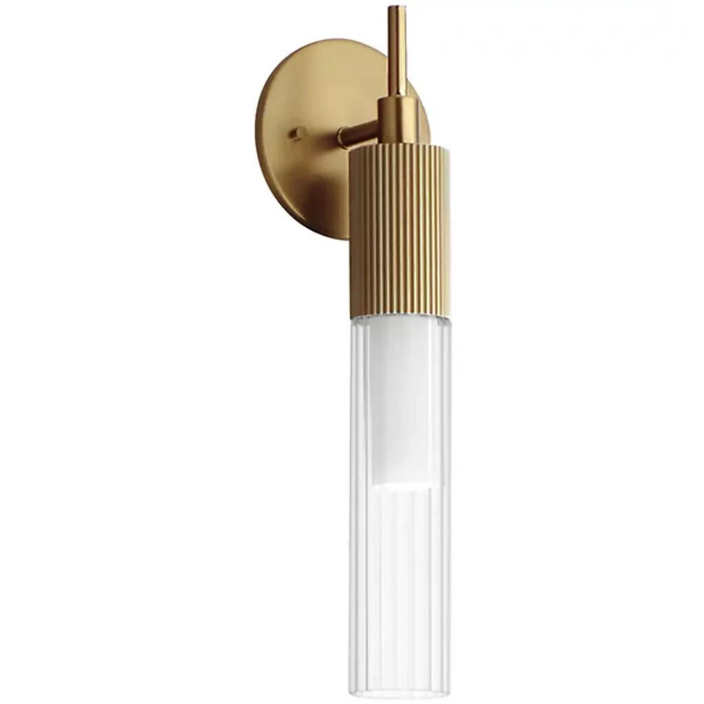 The Luzia LED Wall Sconce from Huxe pairs reeded glass tubes with ribbed aluminum LED housings. The interior frosted glass diffusers gently soften the high-powered LED boards concealed within, providing a warm and inviting ambiance. These low-voltage light sources are powered by a commercially rated range voltage LED driver with universal dimming, making them suitable for residential and decorative commercial or hospitality applications. This pendant uses a JA8 Listed LED GU10 lamp instead of a dedicated LED, offering additional flexibility in lighting design.