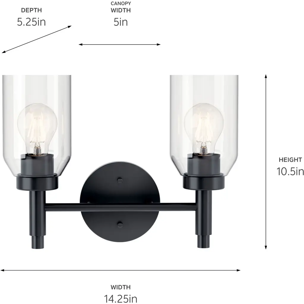 Madden 14.25 Inch 2 Light Vanity with Clear Glass in Black