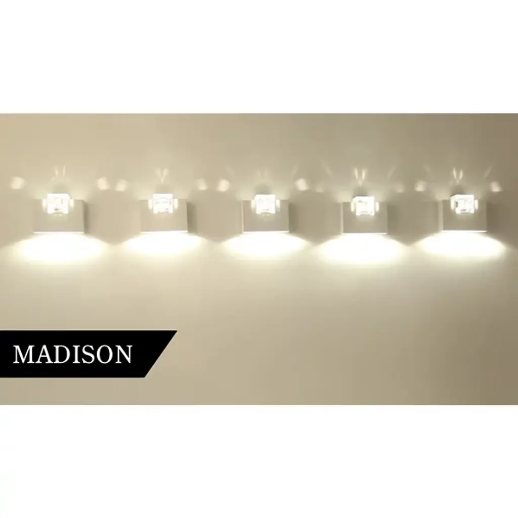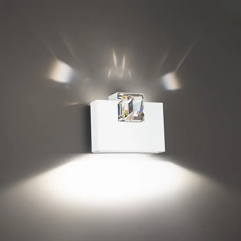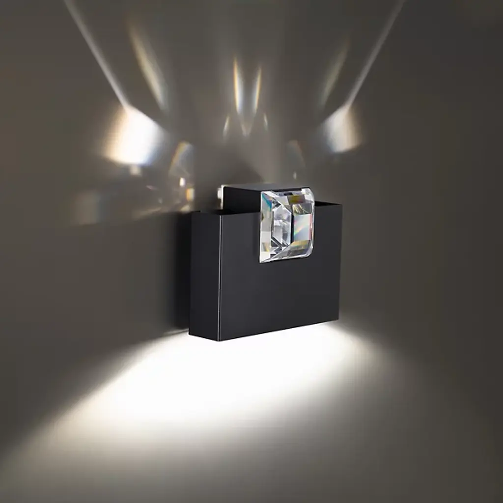 Enliven any inside space with the fabulous facets and engaging design of the Madison LED Wall Sconce from Schonbek Beyond. A clever contemporary fixture fashioned from robust aluminum, it extends a stepped, rectangular wall plate to support damp-listed and ADA-compliant LED lamping inside, transmitting a wall wash below it and setting a pyramidal diffuser at its upper center. This crystal accent adds a luxe note to the otherwise-orderly fixture, expressing a coruscating brilliance that burnishes the metal structure and its surroundings.