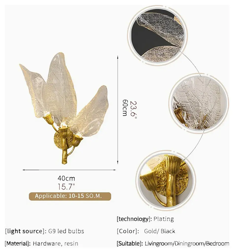 Illuminate your space with a touch of nature-inspired elegance using the Leaf Shaped LED Wall Lamp. This stylish fixture combines modern design with organic motifs, creating a captivating addition to your interior decor.Crafted with attention to detail, the wall lamp features a sleek and minimalist leaf-shaped design. The integrated LED technology provides energy-efficient illumination, while the leaf-inspired silhouette adds a natural and calming ambiance to your room.Product parameters:Size: W40.0xH60.0cm / W15.7xH23.6"Material: Metal, AcrylicColor: Black, GoldColor Temperature: Warm light (3000K), Cool light (6000K)Light Source: E14 LED BulbsVoltage: AC110-240VWattage: Dimmable / Non-dimmableUL Certified: YESApply: Living Room, Dining Room, Kitchen Island, Office, Bedroom, Staircase, Hall, Lobby, Restaurant, BarReminder! Save products as favorites and put them in your shopping cart so as not to lose them.Our advantages- Top-quality- Unique products, production of non-standard models- Perfect balance of price-quality-warranty- 24/7 customer service- Flexible custom production of any size/color- Constant updating of the assortment- Free Express delivery, easy returns.MIRODEMI is the premier retailer of luxury products for home decor and renovation, which will ensure the uniqueness of any interior by providing a combination of stylish shape and innovative technology. We will be glad to cooperate with Interior Designers, Builders, Architects in the field of realizing the exclusive fabulous projects.Go to our store page to see all the latest collections of lighting, furniture and home decor for any budget and space of your sweet home: kitchen, dining room, living room, bedroom, bathroom, staircase, loft, hall, foyer. Become a follower not to miss new items and don''t forget to save your favorite products in order not to lose them. Happy shopping with MIRODEMI.