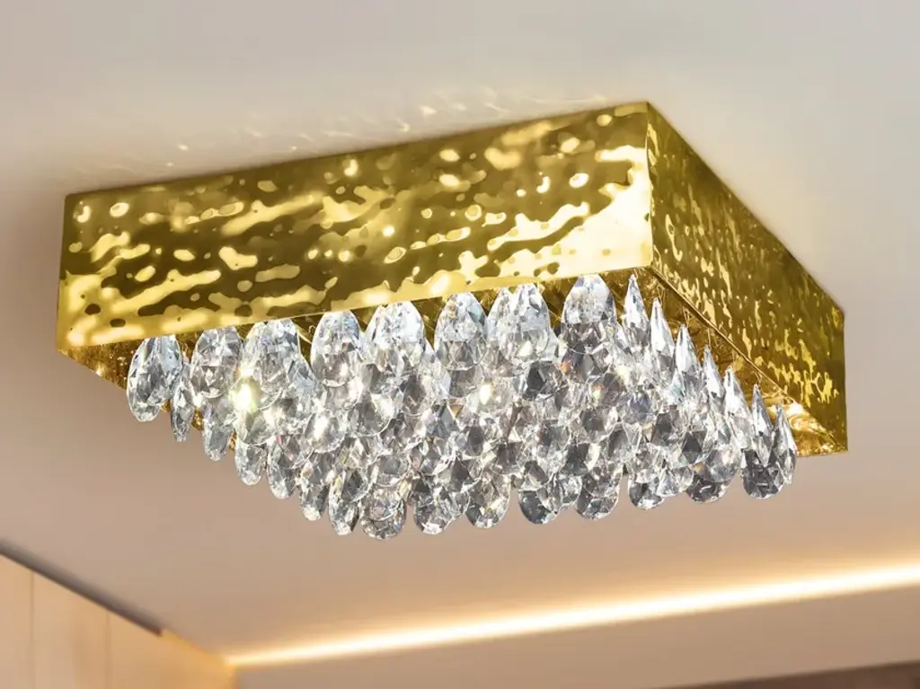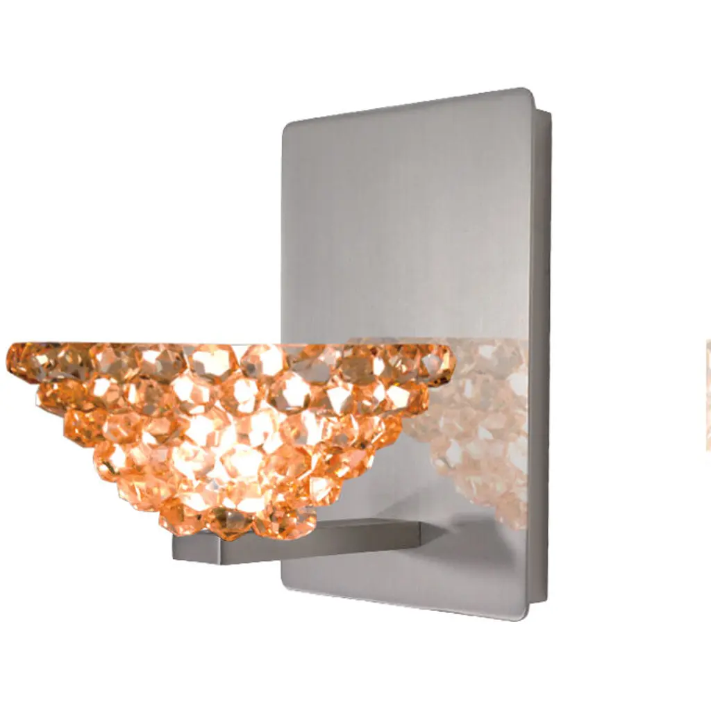 Light source: 1 x R7s halogen energy saving - 1 x R7s LED bulbs.A sculpture of light that captures the strength and warmth of Nature: Magma is the new Patrizia Volpato creation dedicated to rooms which have their distinct and unique style. It creates precious reflections of silver or gold with the sparkling facets of crystal. Total freedom of choice, Magma is available in the wall, ceiling or standard versions.Available finishes: Polished chrome, shiny 24 carat gold. Pendants color: Transparent, Amber, Amethyst, Red.