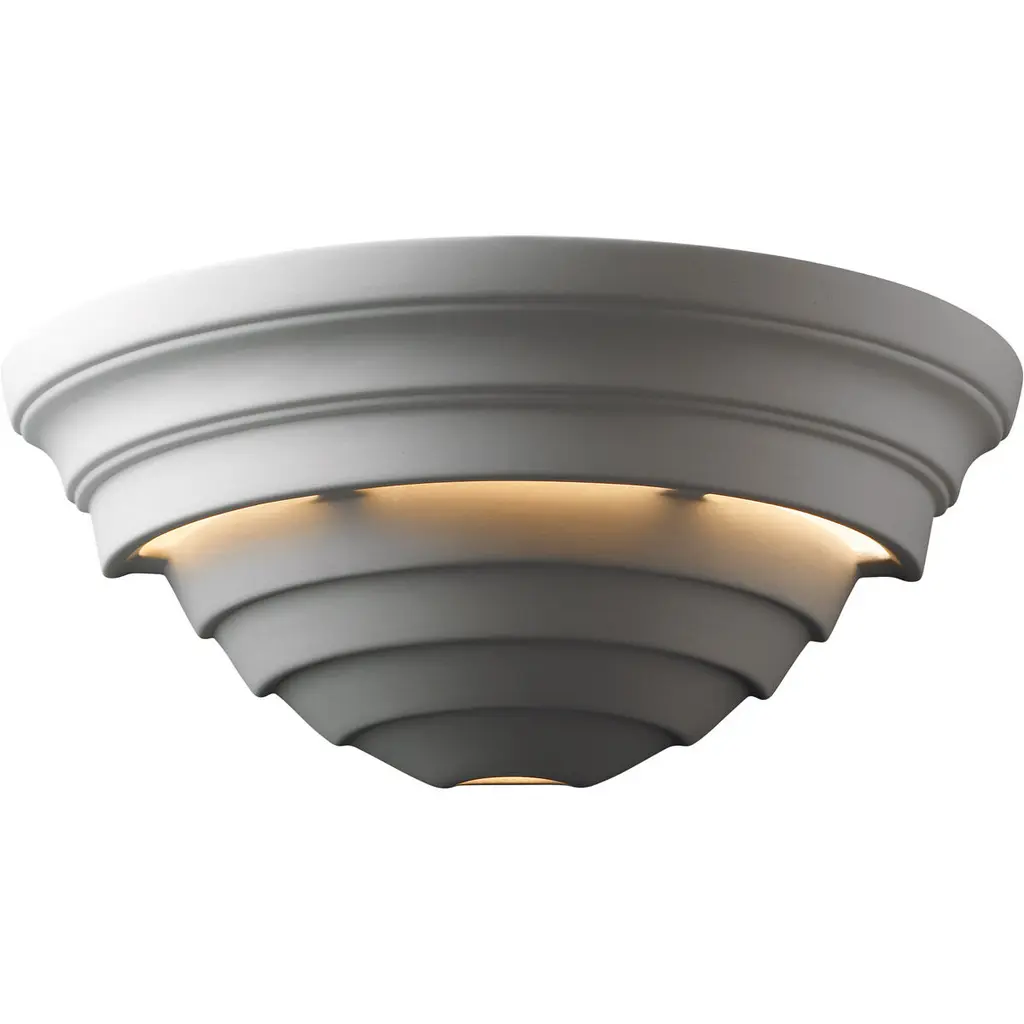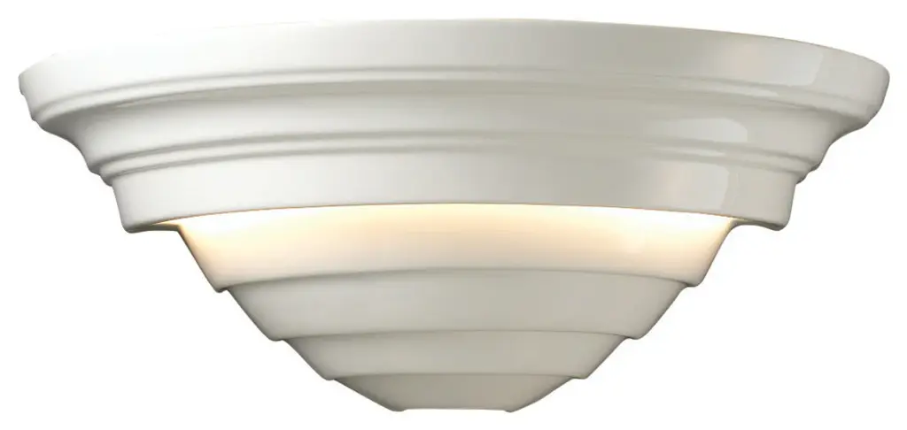 This one-of-a-kind wall light is made from kiln-fired ceramic. The bowl of the Majorca ADA Wall Sconce is set off by the crowning cornice, hearkening back to ancient Greece. This handsome, traditional wall sconce provides generous up-light, enhanced by a gleaming band around the middle casting light onto the bowl. The slim profile of this classic wall sconce is perfect for corridors and public spaces, meeting ADA projection requirements while adding ambiance. Standard Lamping: Uses (1) 100W E26 Medium Base A19 Bulb. (Bulb not included)Number of Bulbs: 1Watts per Bulb: 100Standard Base Type: E26Mounting Center: 3.25in.Country of Origin: U.S.A.Warranty: One year limited warrantyResistant to rust and corrosion. Suitable for indoor or outdoor damp locations.ADA Compliant