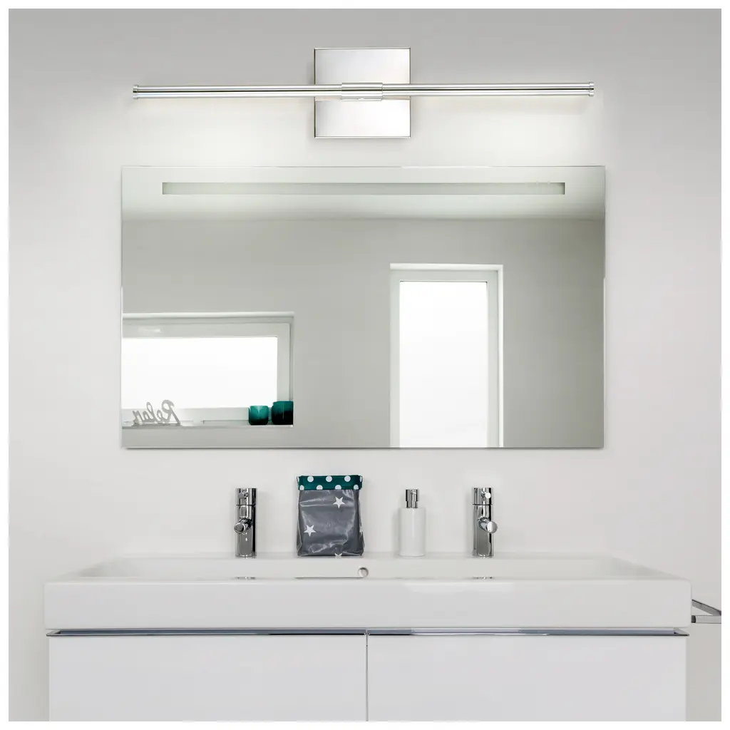 This clean, polished wall sconce is stunning in its minimalism. Featuring an integrated LED light, the piece is both sleek and energy-efficient. We love how the beautiful finish adds a luxurious touch to any room.Features:Finished in chrome, the metal body would suit any color paletteAs this fixture must be hardwired, we recommend a professional electrician manage installationIntegrated 10W LED BulbBuilt-in LED lights, so no bulbs are requiredETL ListedColor: ChromeBody Material: MetalIncludes: One (1) lamp(s)Assembly RequiredDimensions:Lamp: 4.5 inches high x 28 inches wide x 3.5 inches deepAbout us:You see a lamp.We see a decorative work of art.A perfectly curved shade casts a dramatic shadow on a floor. A silk cord you never want to hide. LED lightbulbs: as easy on the environment as they are on the eyes. The JONATHAN Y Lighting collection considers every detail from impeccably sourced materials to designer styling. And our prices are so attractive, we've transformed a functional necessity into a fashion accessory.JONATHAN Y Lighting - a fashion revolution in home decor.