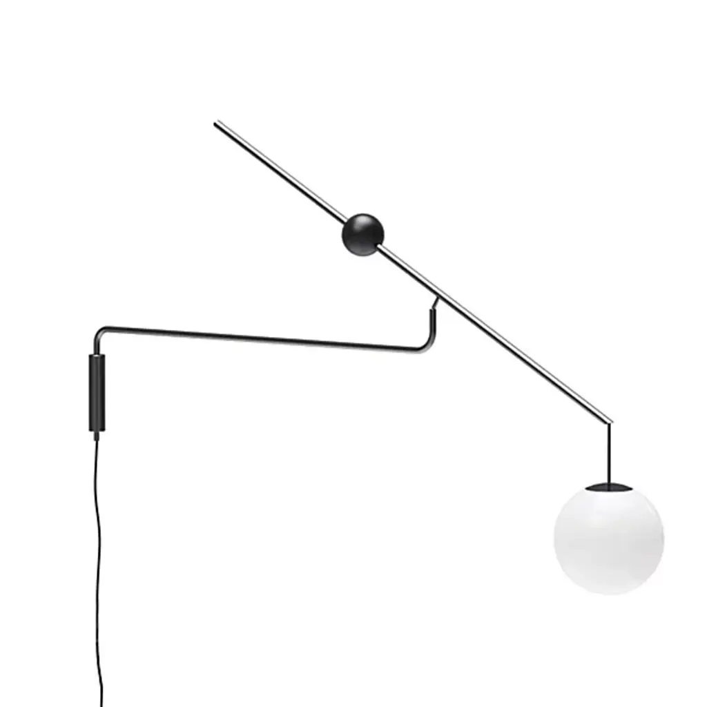 Match a range of tasks across the room with the light coming from the Malamata Wall Sconce from Luceplan. Studio Shulab expresses their design message with purified and simple forms. Here, a vertical line marks the sconce’s compact backplate. A sweeping arm shoots out with smooth swiveling capabilities. Another arm lays on top, held by an angle-adjustable joint. The top arm underscores the graphic character of the piece as it produces sharp angles and pristine spheres. The blown glass globe at the end pops visually in a bright white aura. This aura is great over table surfaces for tasks or in an open space for ambiance.