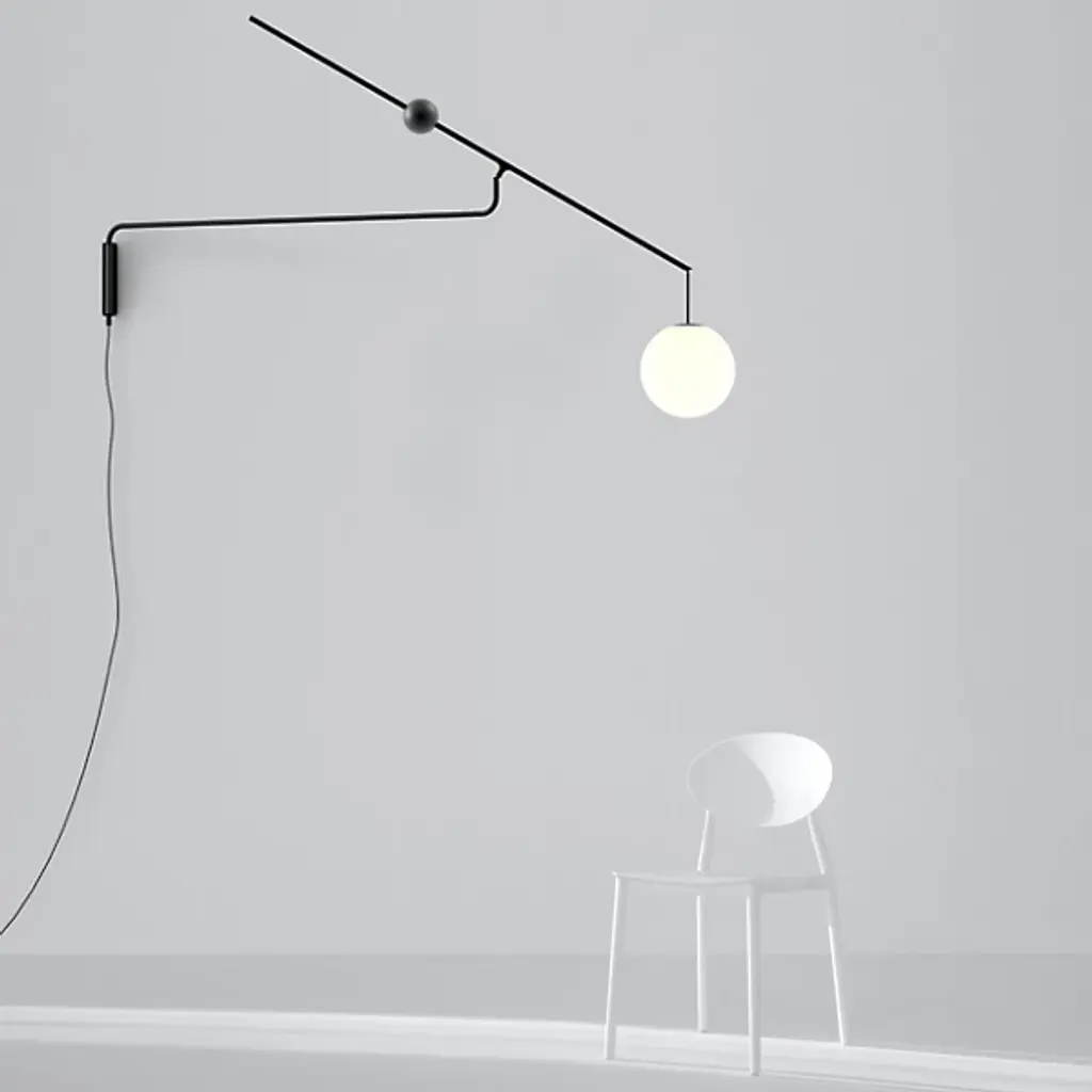 Match a range of tasks across the room with the light coming from the Malamata Wall Sconce from Luceplan. Studio Shulab expresses their design message with purified and simple forms. Here, a vertical line marks the sconce’s compact backplate. A sweeping arm shoots out with smooth swiveling capabilities. Another arm lays on top, held by an angle-adjustable joint. The top arm underscores the graphic character of the piece as it produces sharp angles and pristine spheres. The blown glass globe at the end pops visually in a bright white aura. This aura is great over table surfaces for tasks or in an open space for ambiance.