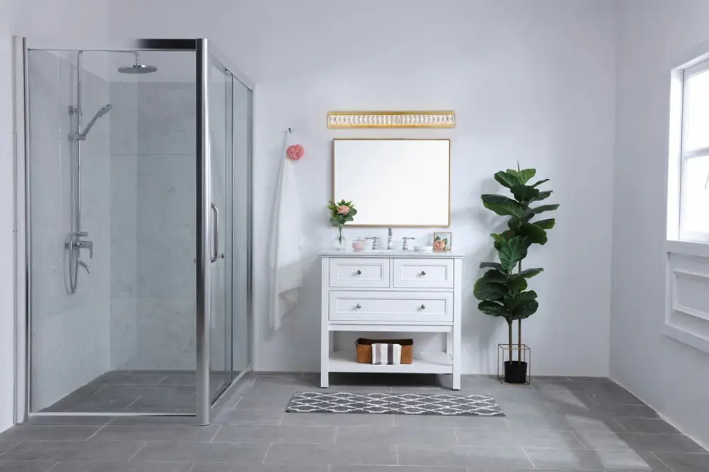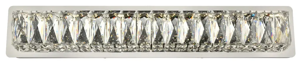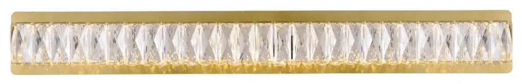 This wall sconce dresses up a bathroom, office, or bedroom without overwhelming the surrounding decor. A rectangular stainless-steel frame and backplate would seem austere if it weren��_t covered by a row of shining rectangular royal-cut clear crystals. The gold-finished backplate is polished to a mirror shine and reflects the glittering crystals for additional sparkle. Available in three size options with a sleek gold finish that completes this modern look.The gold-finished backplate is polished to a mirror shine and reflects the glittering crystals for additional sparkle.Illuminated with integrated led chipsCan be mounted vertically or horizontallyemits warm light at 3000Kfor indoor usebrilliant crystalsaverage life hours: 20,006