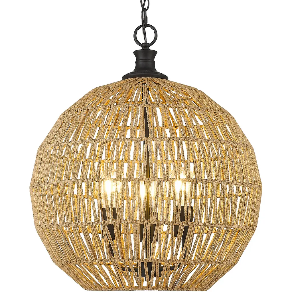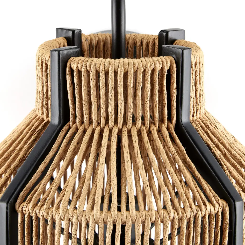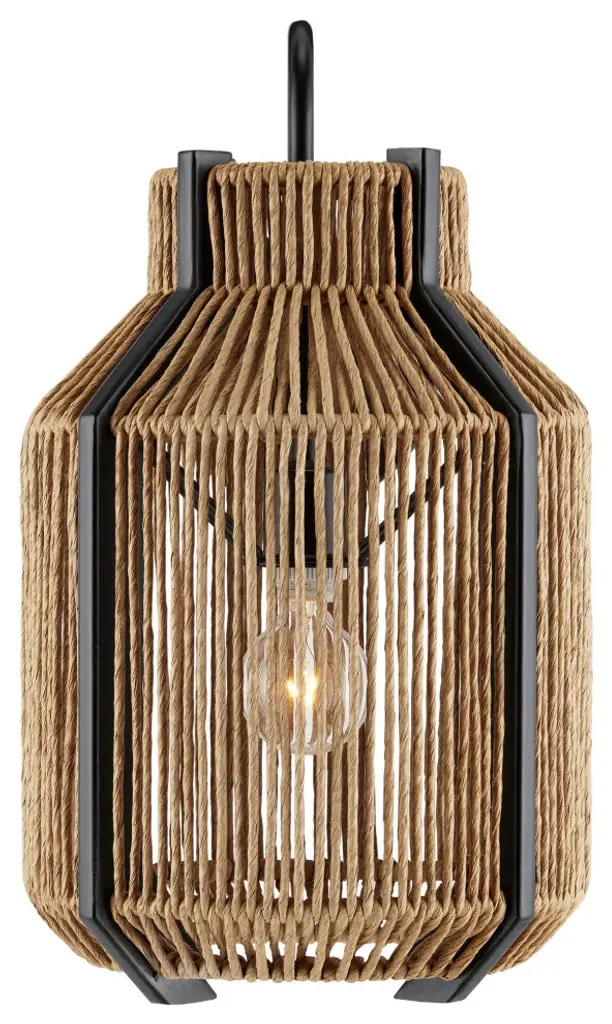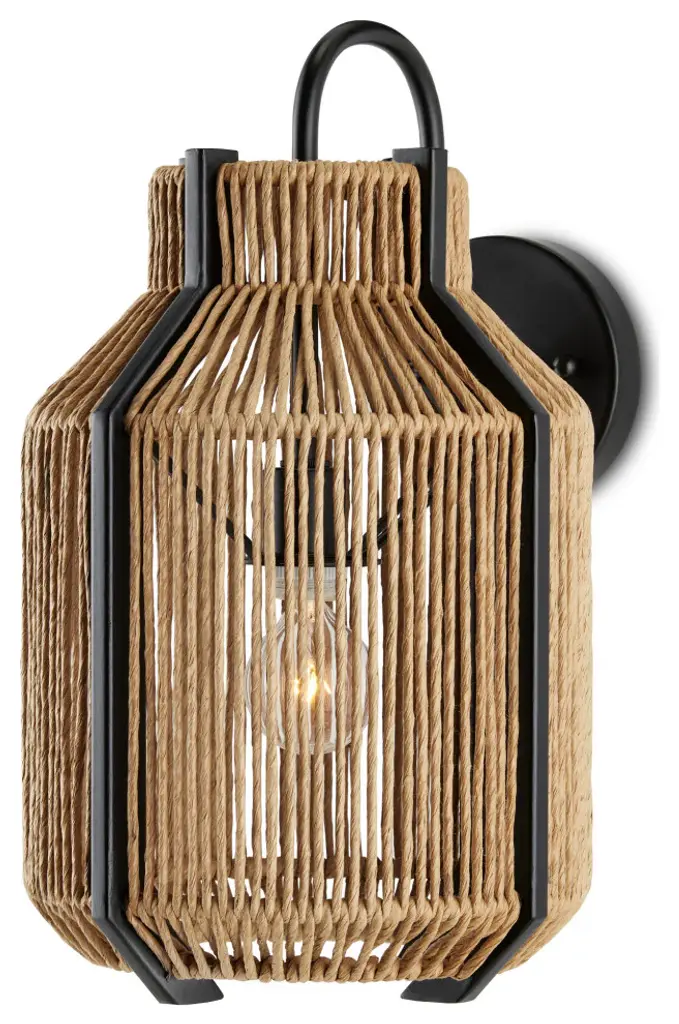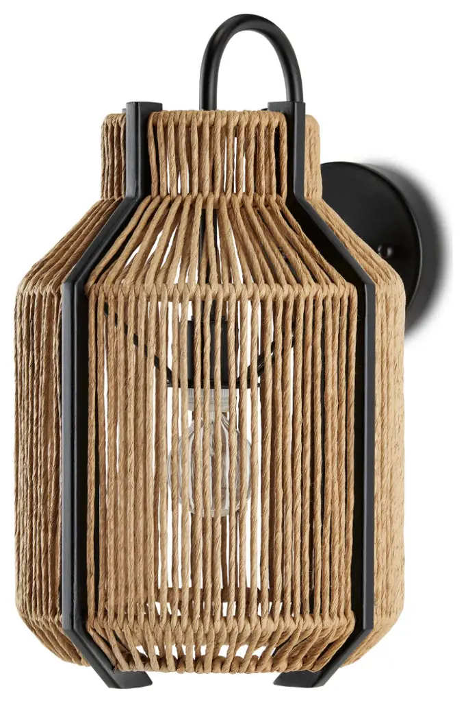 The Mali Wall Sconce, designed by Clarence Mallari, has a complex interplay of sleek and earthy elements. The lines that rise above and below the natural woven shade are made of wrought iron in a satin black finish, as are the stem curving into the sconce and the hardware that holds the bulb. These are the clean-lined elements that contrast the Kraft paper twine on the rope sconce, which is tightly woven but not so dense that it interrupts the warm glow of illumination from its interior.Bulbs Included: NBulb Wattage: 60Bulb Type: B Torpedo TipNumber of Bulbs: 1UL Listed: YesHardwire or Plug: Hardwire