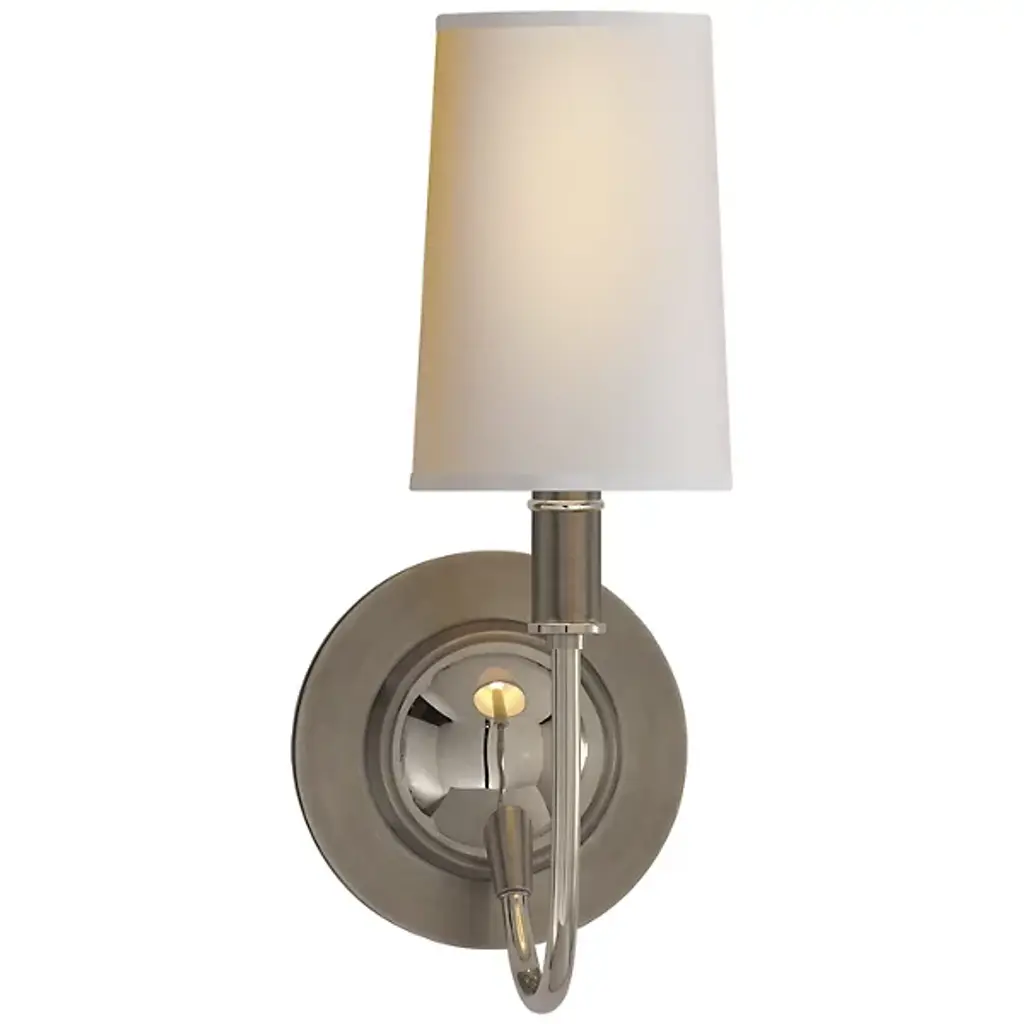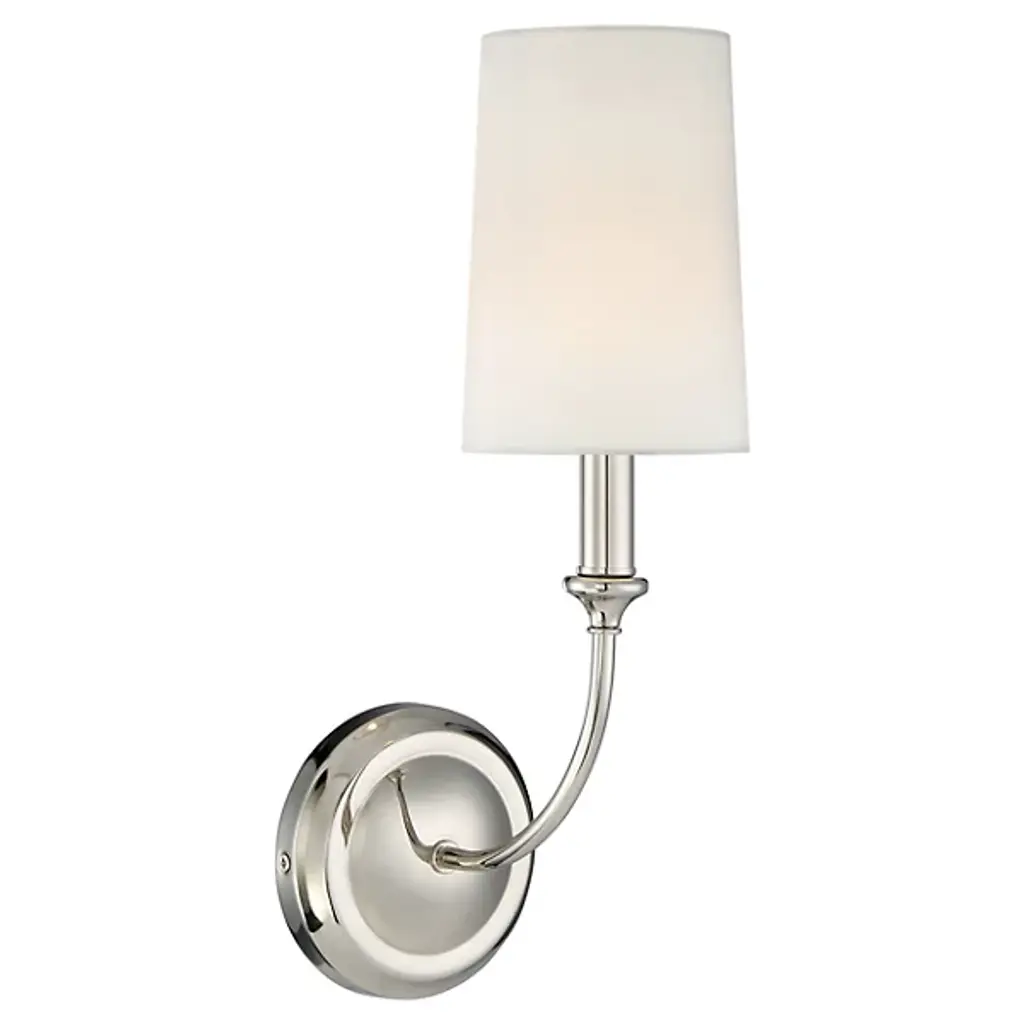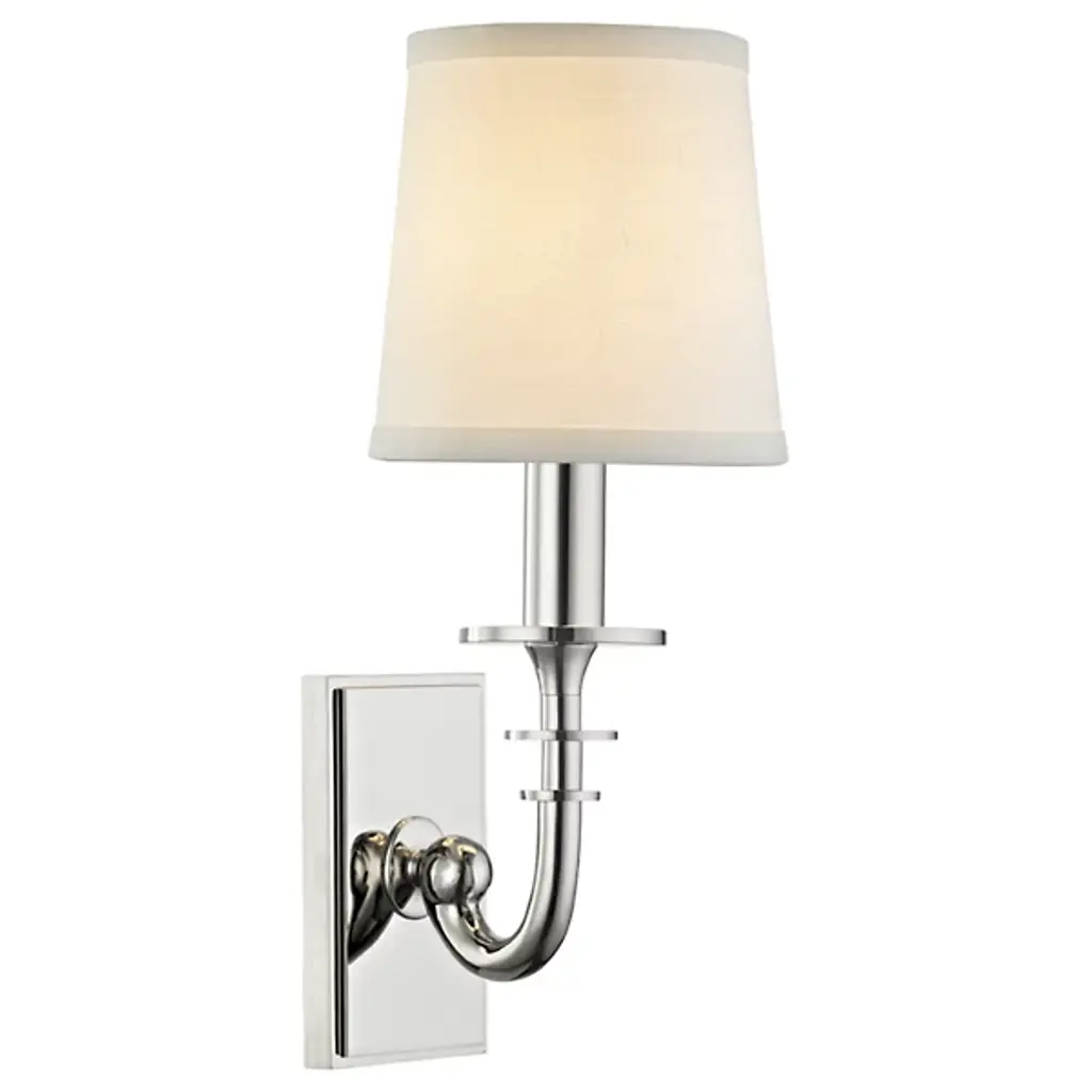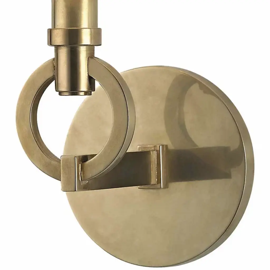 Making artistic use of negative space, the Malibu Wall Sconce's open-ring detail defies expectations. Hudson Valley Lighting discretely carries the sconce's wiring inside the circular holder to create a fine sculptural tableau. Clip shade attachment. Hard-wired.