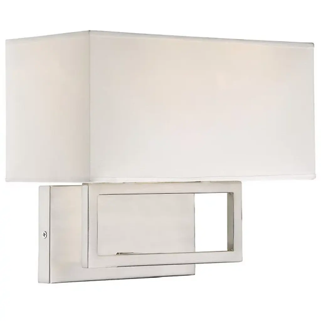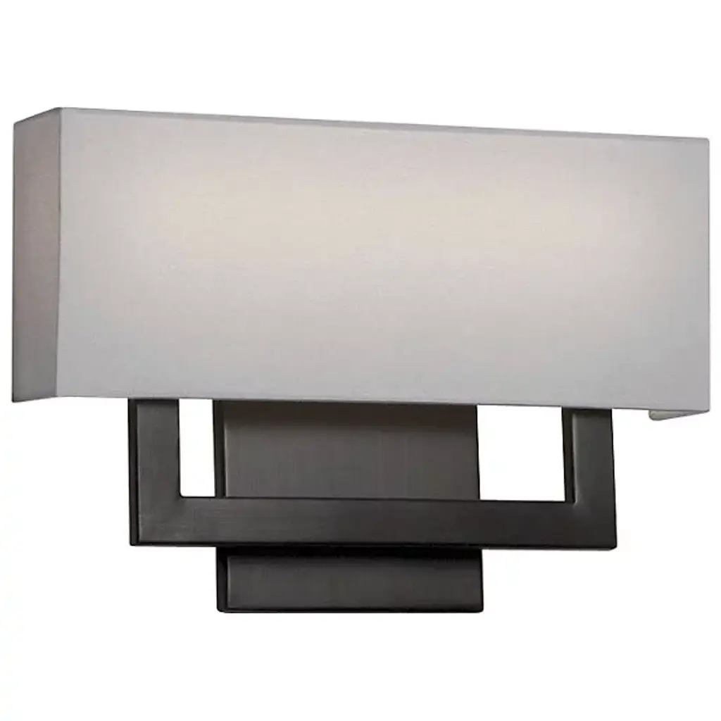 Lend your surroundings refined grace with the smooth surfaces of the Manhattan LED 2-Arm Wall Sconce by dweLED. A steel wall mount holds up an angular double-arm piece in a U-shape, tucking LED lamping behind both a fabric shade and an etched-glass diffuser for a softer glowing presence. The Manhattan may look a bit ornate, but it’s durable, damp-rated, and ADA compliant, making it fit for use anywhere in the home.