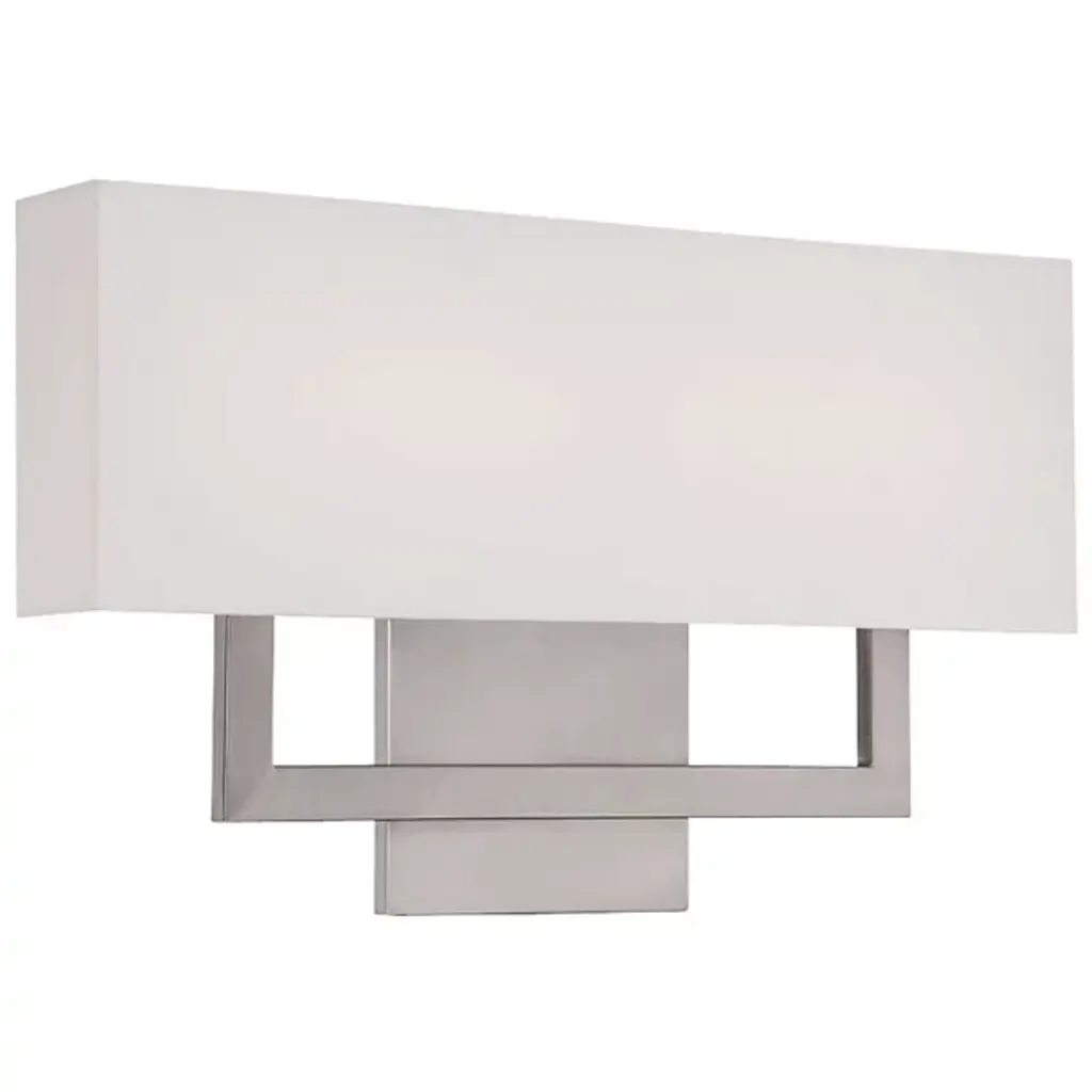 Lend your surroundings refined grace with the smooth surfaces of the Manhattan LED 2-Arm Wall Sconce by dweLED. A steel wall mount holds up an angular double-arm piece in a U-shape, tucking LED lamping behind both a fabric shade and an etched-glass diffuser for a softer glowing presence. The Manhattan may look a bit ornate, but it’s durable, damp-rated, and ADA compliant, making it fit for use anywhere in the home.