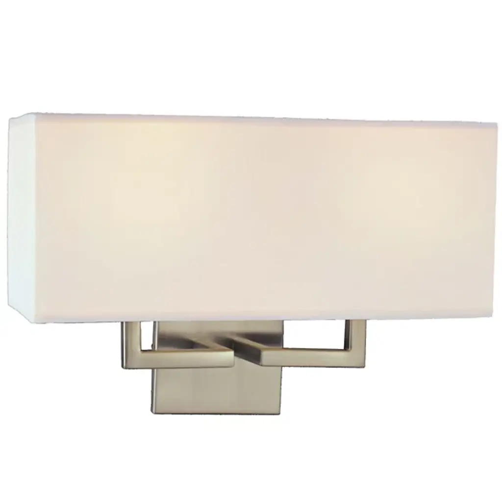 Lend your surroundings refined grace with the smooth surfaces of the Manhattan LED 2-Arm Wall Sconce by dweLED. A steel wall mount holds up an angular double-arm piece in a U-shape, tucking LED lamping behind both a fabric shade and an etched-glass diffuser for a softer glowing presence. The Manhattan may look a bit ornate, but it’s durable, damp-rated, and ADA compliant, making it fit for use anywhere in the home.