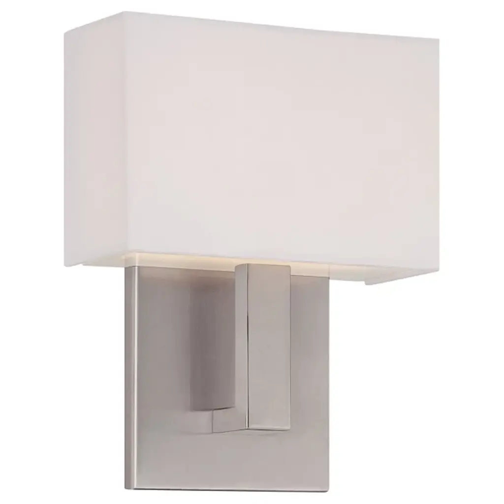 Urban elegance. The dweLED Manhattan LED Wall Sconce uses simple lines to create a tidy modern silhouette. A trimless fabric shade is crisp and smooth in keeping with the neat plated steel wall plate and angular arm. An Etched glass diffuser ensures the energy-efficient LED illumination shines with minimal glare.