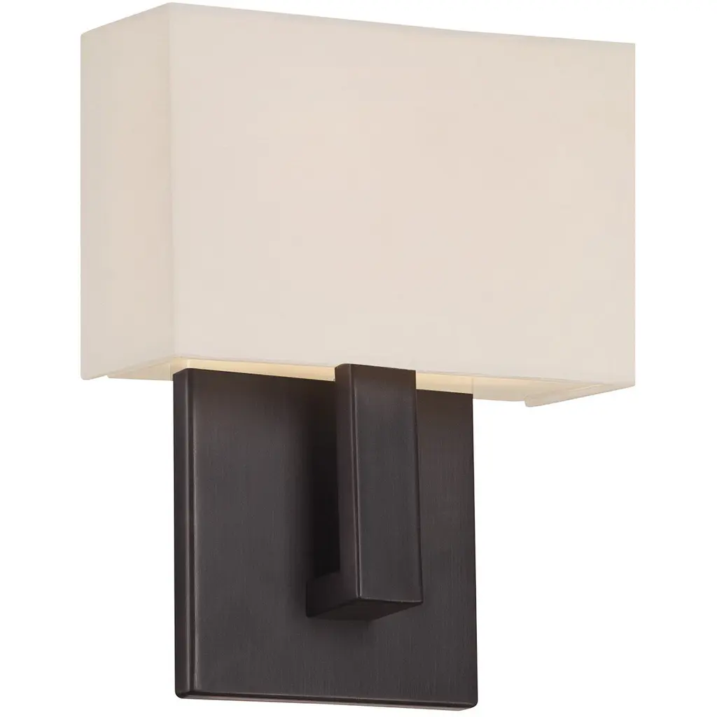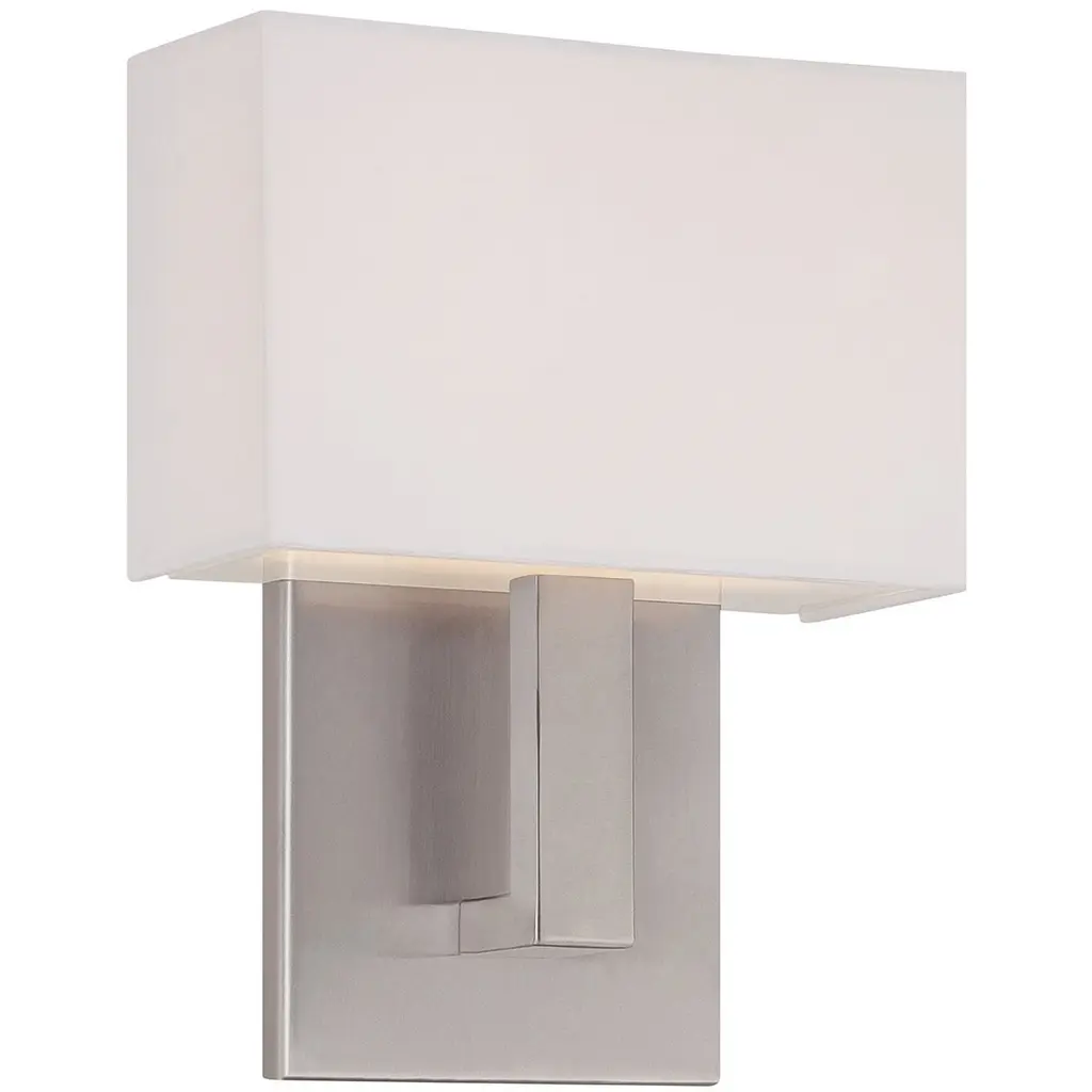 Urban elegance. The dweLED Manhattan LED Wall Sconce uses simple lines to create a tidy modern silhouette. A trimless fabric shade is crisp and smooth in keeping with the neat plated steel wall plate and angular arm. An Etched glass diffuser ensures the energy-efficient LED illumination shines with minimal glare.