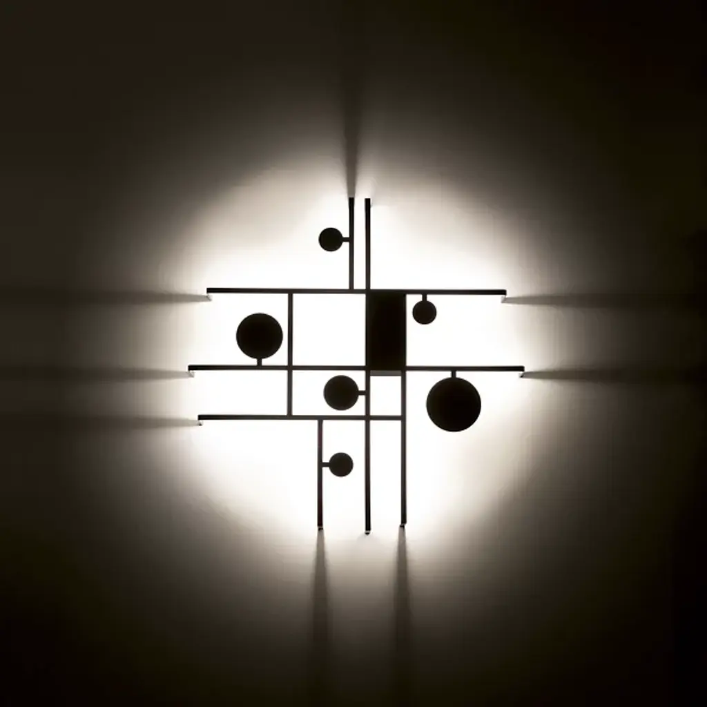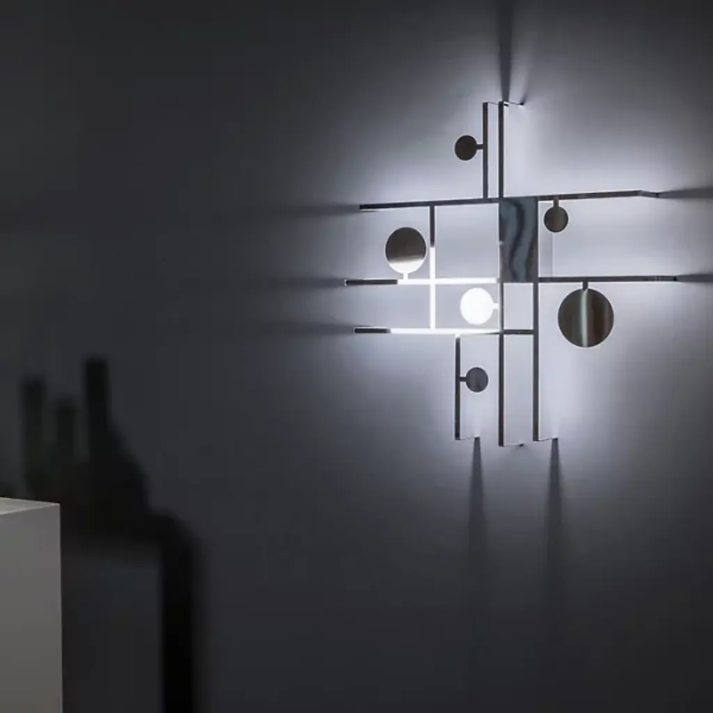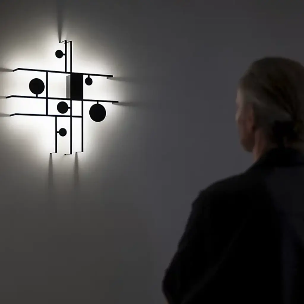 A declaration of playfulness, sophistication, and inventiveness. Inspired by abstractionism, the Manifesto LED Wall Sconce from Axolight is a gripping drawing, using light as an extension of its physical materials. Creator Timo Ripatti’s pieces blur the lines between art and design. Here, Ripatti starts with the idea of playing creative with shapes. The structure produces an asymmetric composition of lines that generate flat and open rectilinear shapes. Charming circles of different scales move inside the composition for a rousing sense of movement. While the structure carries a single color, the piece uses its back pointing LEDs like paint, just like the colorful abstractionist artworks. The LEDs leave an alluring warm aura against the wall, giving the playful shapes dramatic definition.