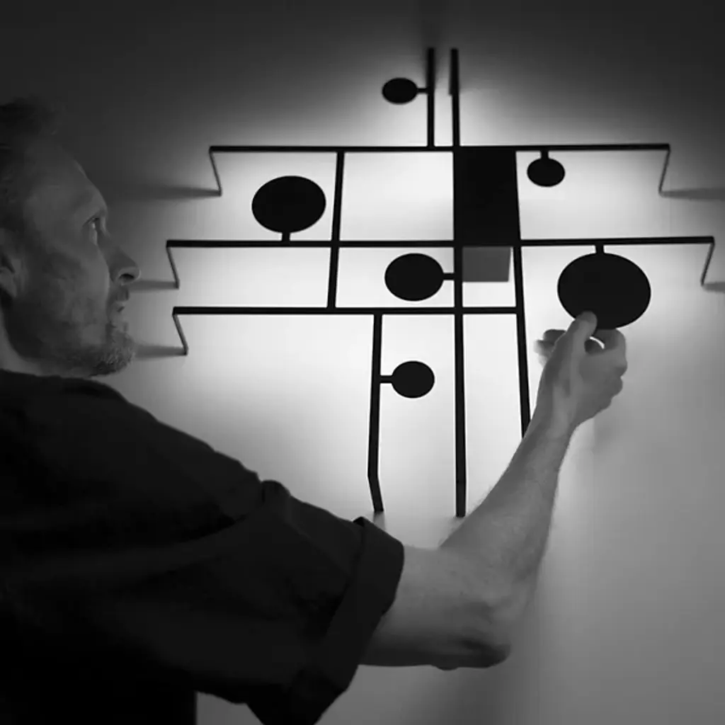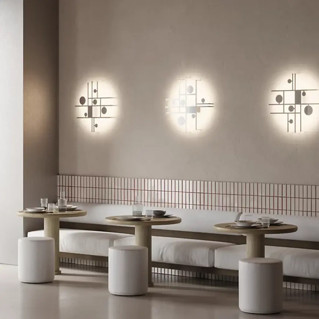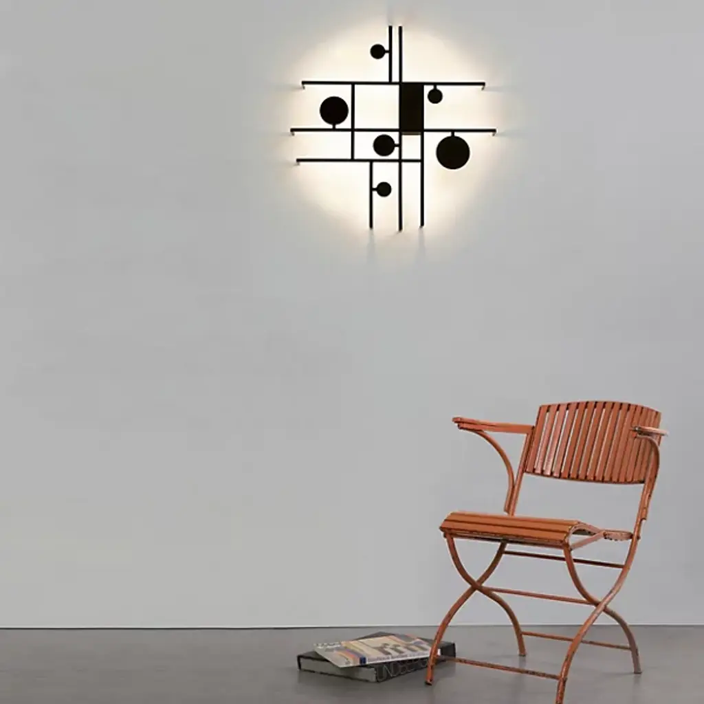 A declaration of playfulness, sophistication, and inventiveness. Inspired by abstractionism, the Manifesto LED Wall Sconce from Axolight is a gripping drawing, using light as an extension of its physical materials. Creator Timo Ripatti’s pieces blur the lines between art and design. Here, Ripatti starts with the idea of playing creative with shapes. The structure produces an asymmetric composition of lines that generate flat and open rectilinear shapes. Charming circles of different scales move inside the composition for a rousing sense of movement. While the structure carries a single color, the piece uses its back pointing LEDs like paint, just like the colorful abstractionist artworks. The LEDs leave an alluring warm aura against the wall, giving the playful shapes dramatic definition.
