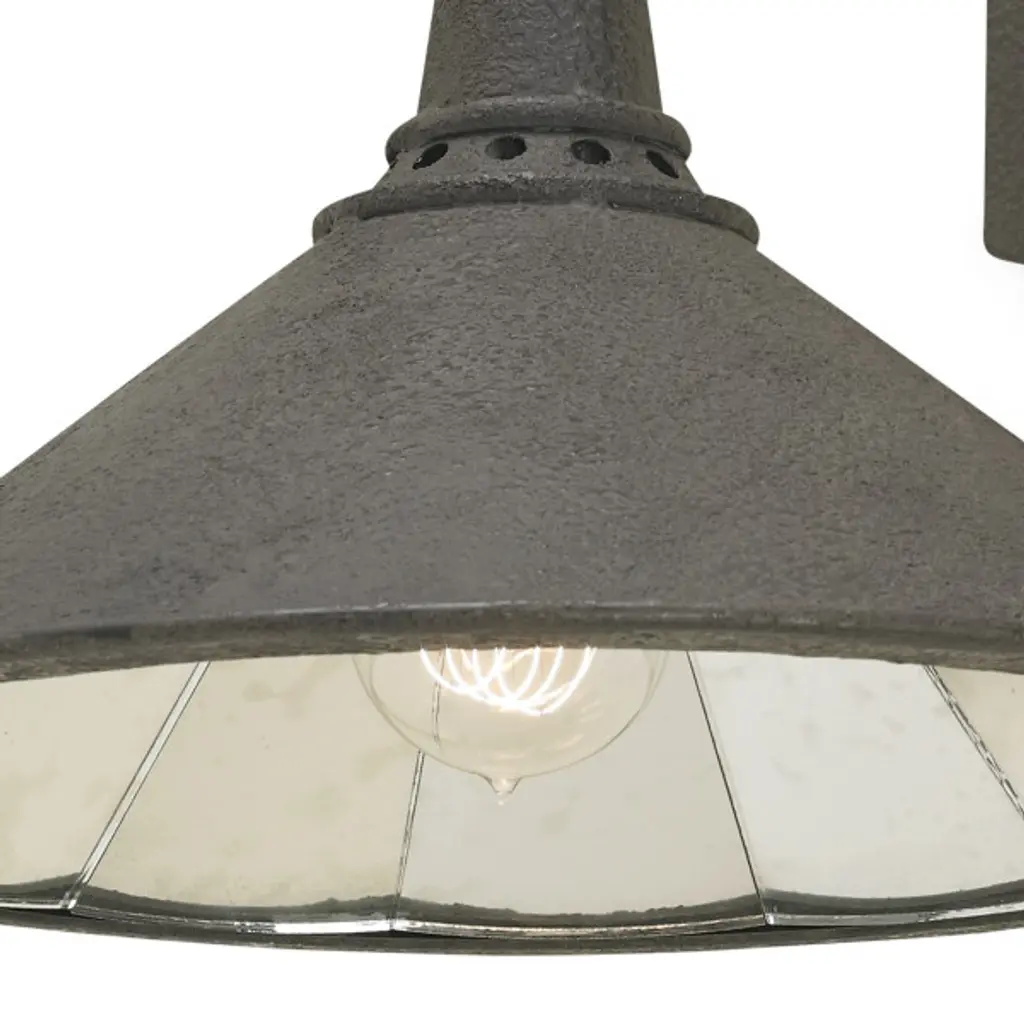 The Manuscript Wall Sconce is a contradiction in tones. The finish on the exterior of the shade contrasts the slices of antiqued mirror fitted piece by piece inside the shade to create a luminous reflector. This wall sconce is certified for damp locations.
