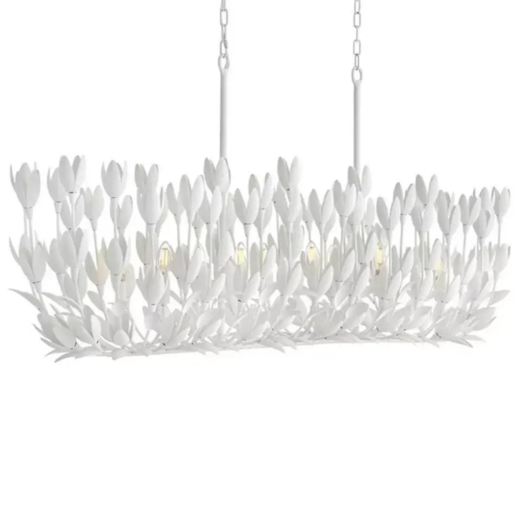 A sophisticated take on a vine-inspired motif, Marabec shines with natural grace. Leavessculpted from white plaster provide a clean, modern feel extending from warm Gold Leafbranches. The delicately curved framework imparts a sense of movement, energizing interiorspaces. Available as a semi-flush in two sizes or as a wall sconce.