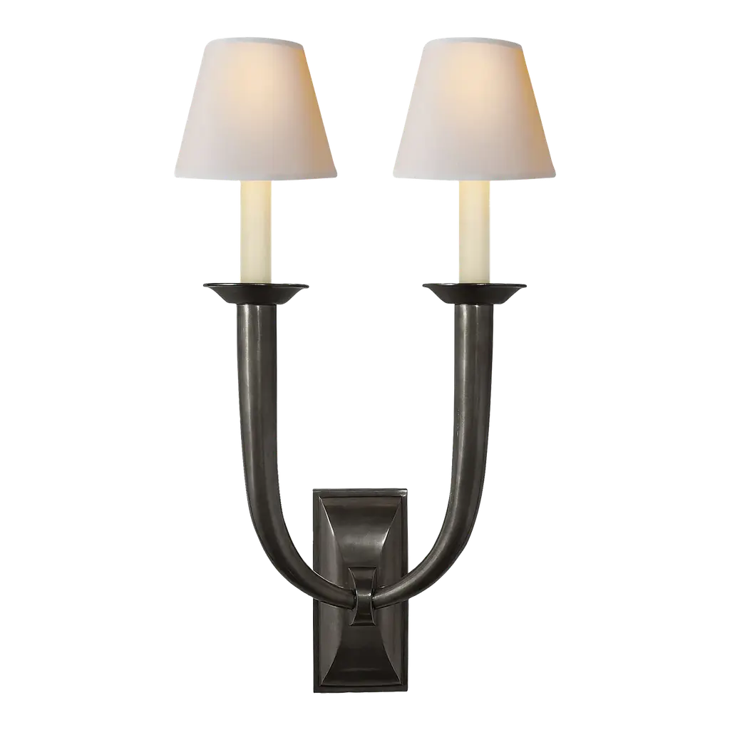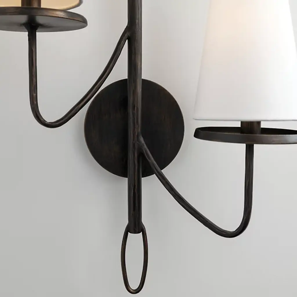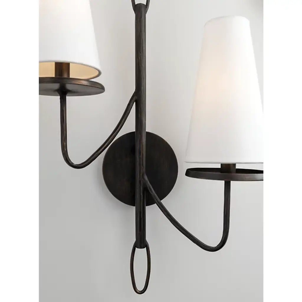 A subtle accent light inspired by minimalist modern architecture, the contemporary Marcel 2-Light Wall Sconce by Troy Lighting creates a strong visual effect with its pronounced lines and forms. Framed using handworked Iron with a rough finish, this fixture features a long tapered shade in Cotton that nearly connects with a small round base accent. The light effect created is muted and targeted, making it a great selection for bedsides.