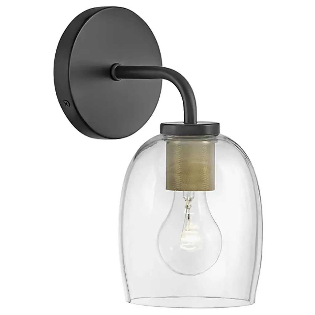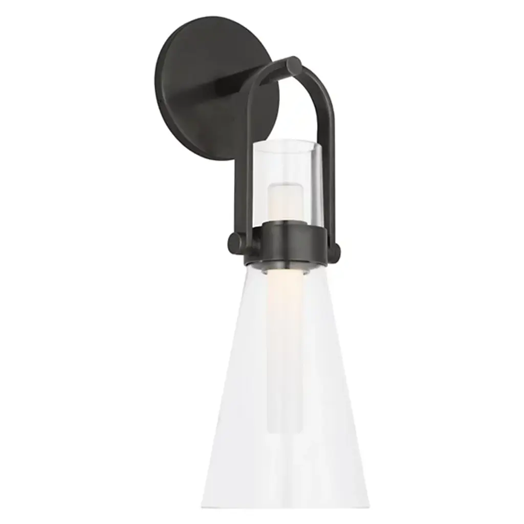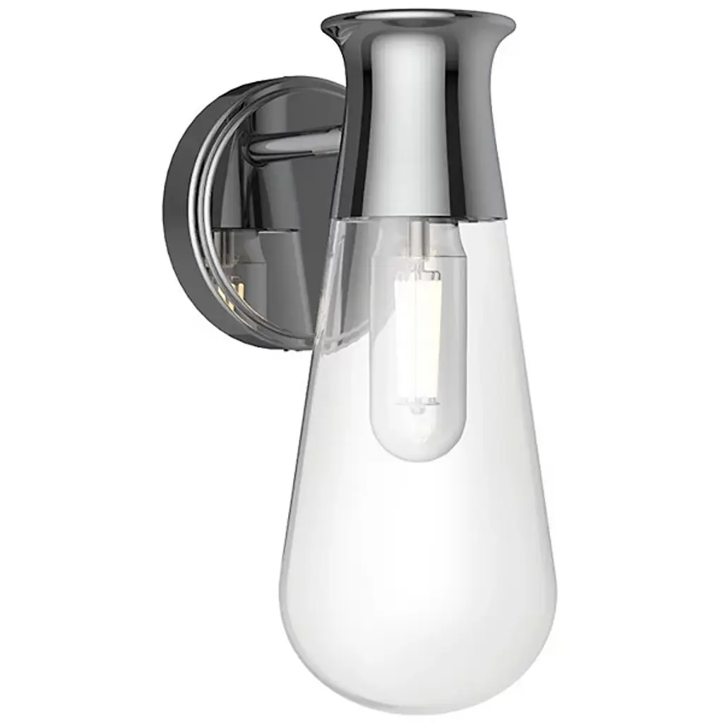 The Marcel Wall Sconce from Alora Mood is a sculptural presence in the room, showcasing its fluid curves with shimmering light. This trim sconce sports a compact backplate to suit a range of mounting scenarios. It grabs one’s attention with the elegant finish and subtle contours of its metal lamp holder. A glass shade follows below, evoking the silhouette of a water droplet. While on, the piece generates a warm, intimate glow.