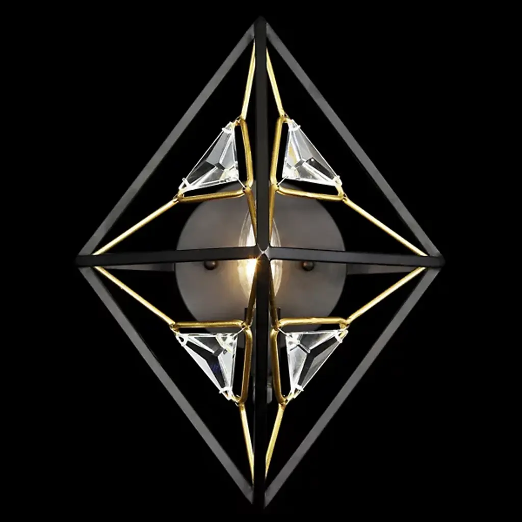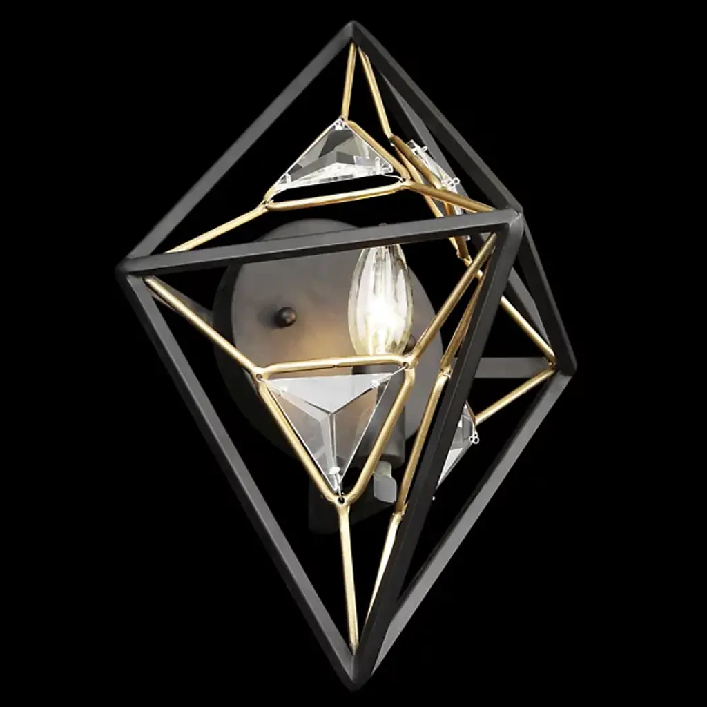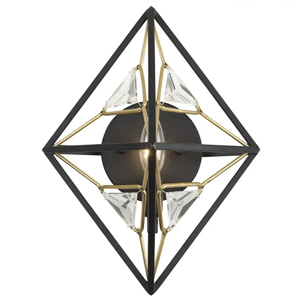 A futuristic accent for modern interiors. The Marcia Wall Sconce by Varaluz has a unique, cosmic look, with an angular frame made of Steel. To add a touch more intrigue and glamour to the overall effect, custom cut triangular Crystals hover around the single exposed bulb (not included) at the center. The crystals catch the eye with their sparkle, and they help enhance the spread of ambient light all around spaces like the dining room or living room.