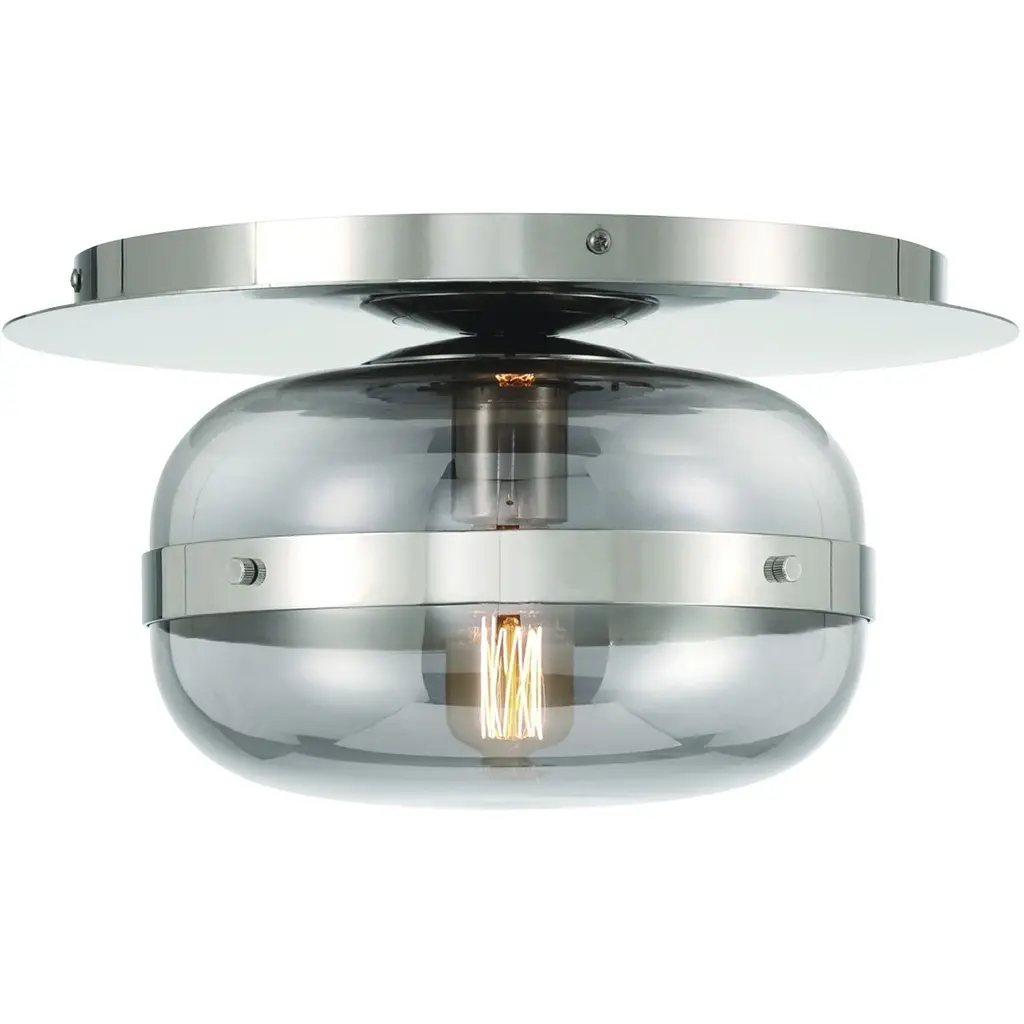 The inspiration of Marco comes from old fashioned lanterns. It is very versatile which can be either a wall sconce or a flush mount. This series comes in 2 finishes: Chrome and Gunmetal, both with Brushed Nickel interior and a Clear Glass cover. Available