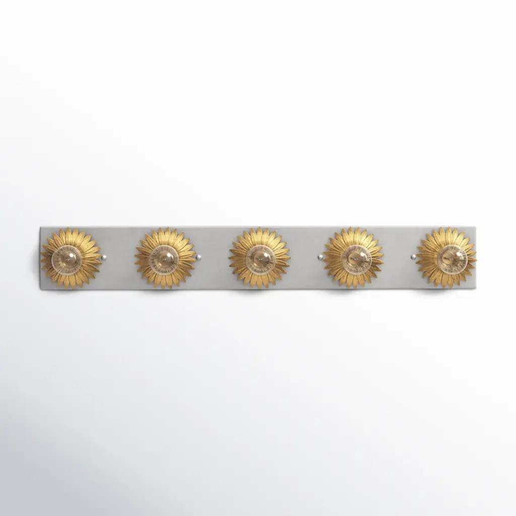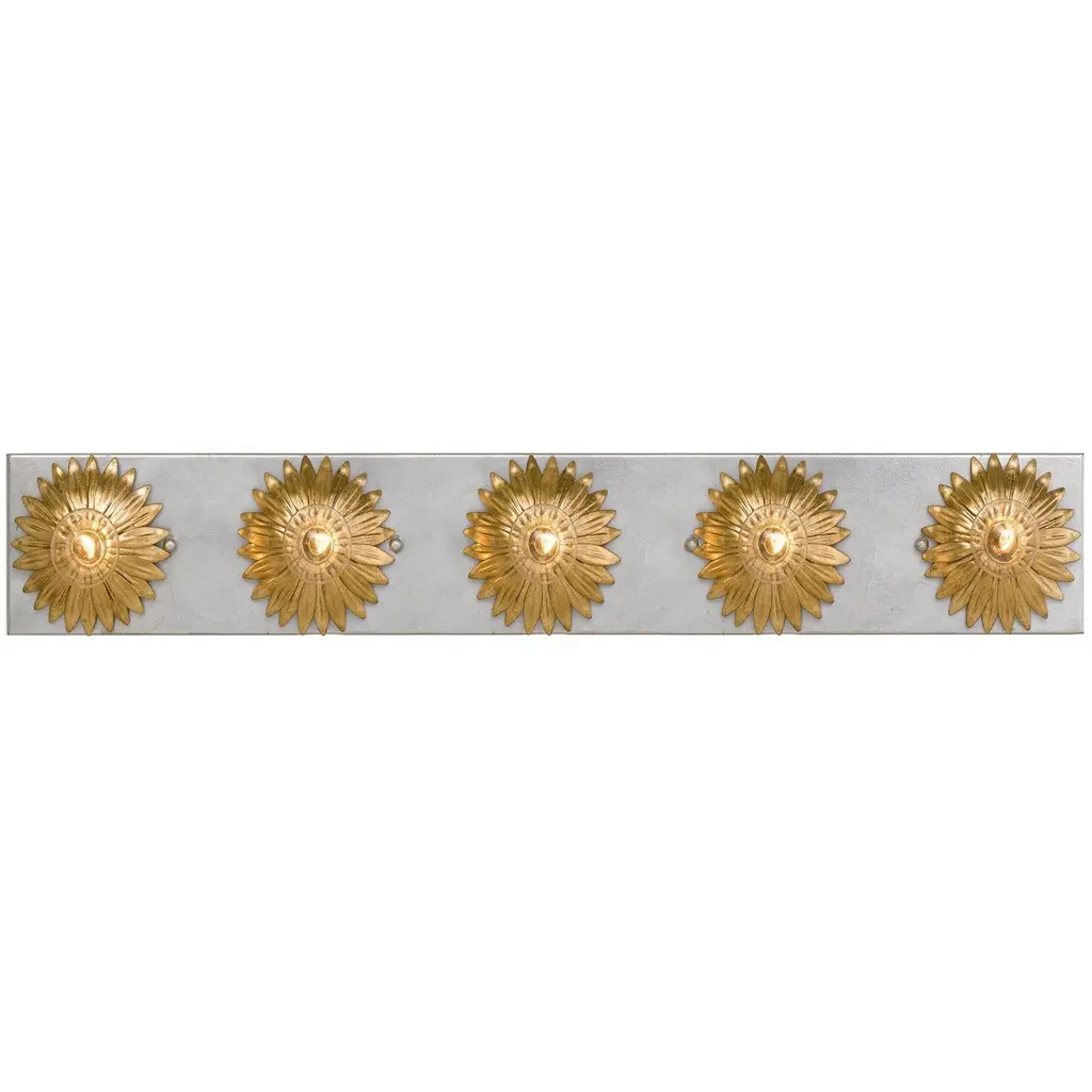 Layers of shapely wrought iron leaves are finished in antique gold, forming this stunning bathroom vanity. The tailored elegance of the shimmering florals are perfect for a traditional home though are versatile enough to be incorporated into any design. Perfect to add a bit of glam to any bathroom.
