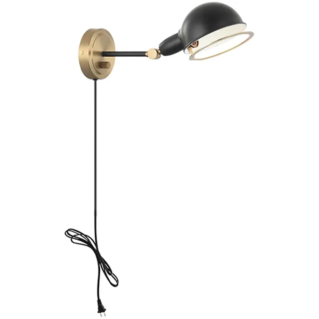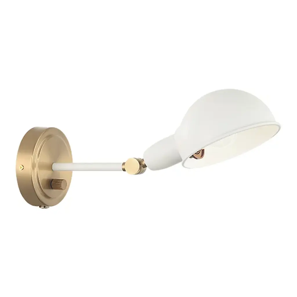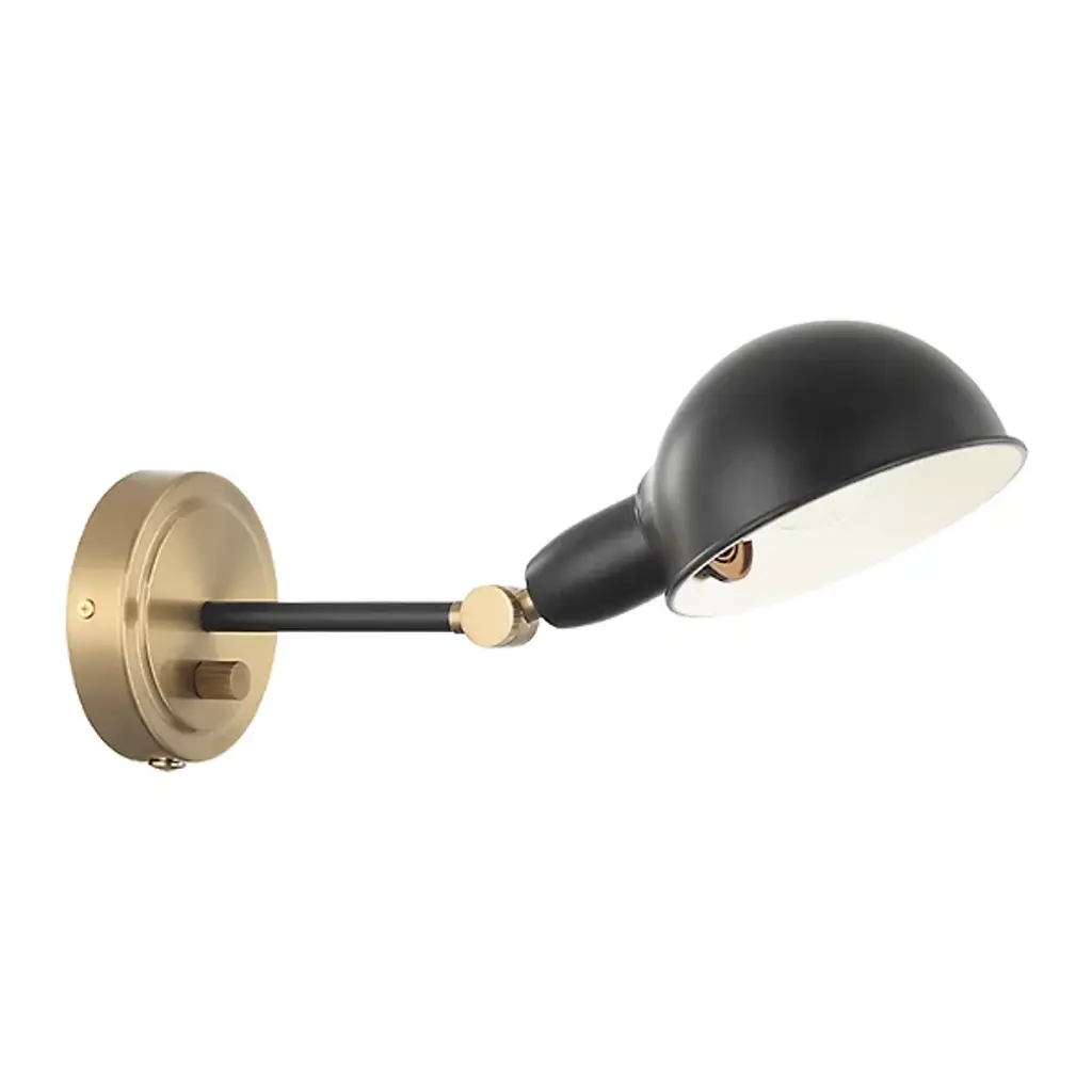 Antique-inspired design with an emphasis on detail. The Mari Wall Sconce from Alder & Ore gives your rooms a tailored glow and a simply intriguing silhouette. It's a clean metal piece fitting for the refined space. It catches your eye with color alone through a matte and shiny finish. Leaning forward in a slender arm, a dome metal shade covers the bulb for a glare-free lighting experience. A removable circular detail on the shade draws you closer as it appears to float in the air. With a vertically adjusting joint, the shade directs light with ease. Light streams out with a soft, diffused quality.
