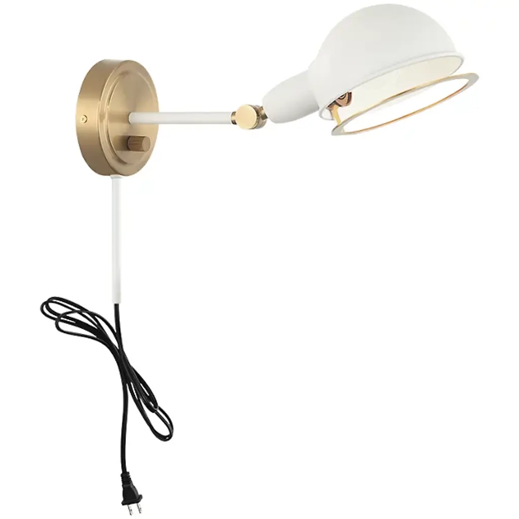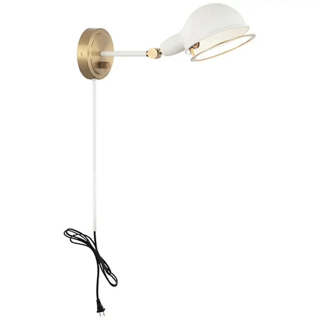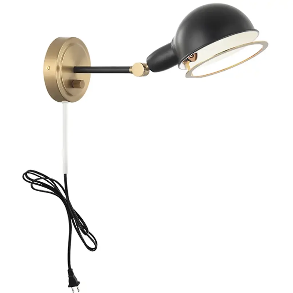 Antique-inspired design with an emphasis on detail. The Mari Wall Sconce from Alder & Ore gives your rooms a tailored glow and a simply intriguing silhouette. It's a clean metal piece fitting for the refined space. It catches your eye with color alone through a matte and shiny finish. Leaning forward in a slender arm, a dome metal shade covers the bulb for a glare-free lighting experience. A removable circular detail on the shade draws you closer as it appears to float in the air. With a vertically adjusting joint, the shade directs light with ease. Light streams out with a soft, diffused quality.