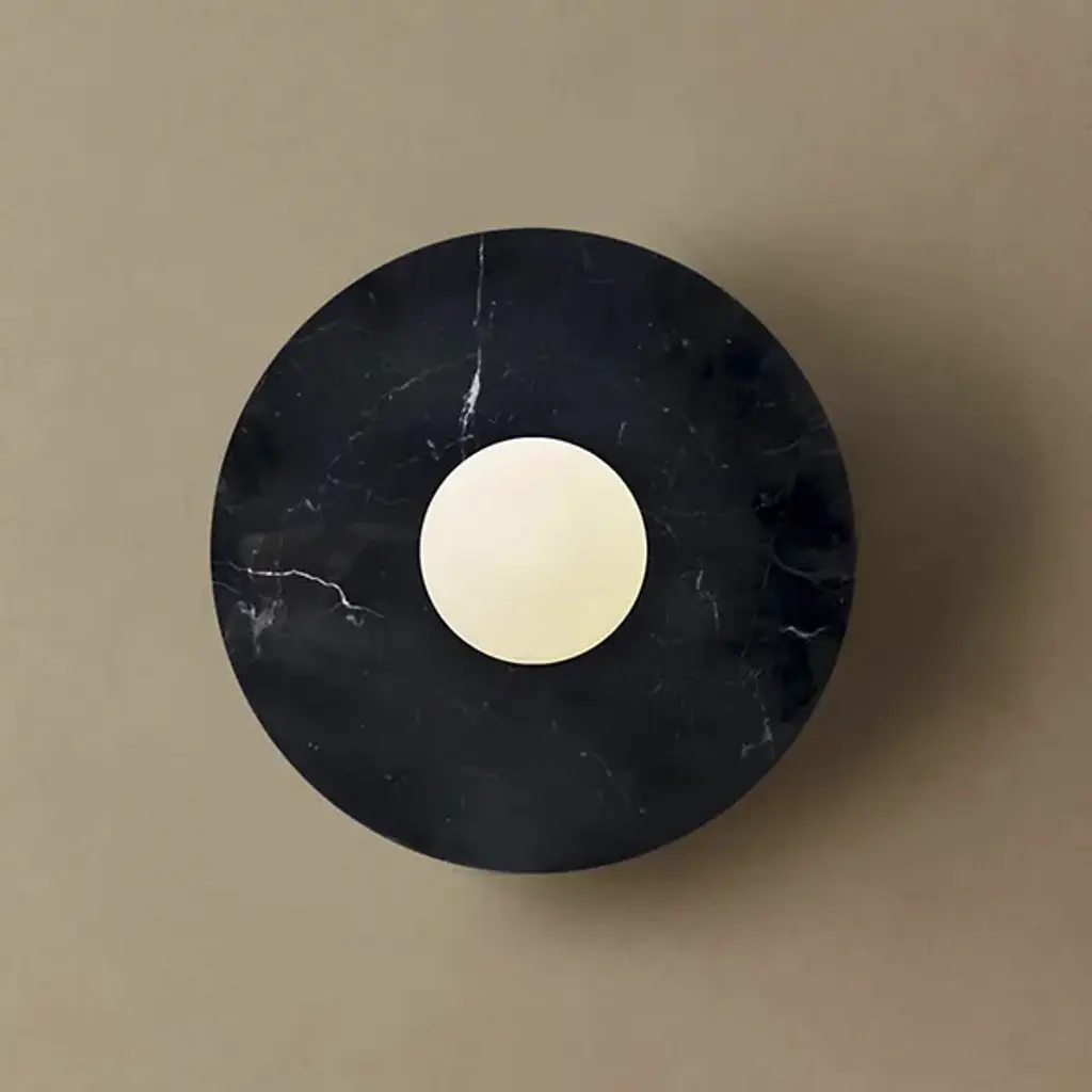 The Maria Wall Sconce from Dounia Home brings artisanal charm and welcome warmth to indoor walls. Handcrafted in Morocco, this sconce pairs a smooth circular marble wall plate with a glass globe that houses damp-rated lamping. The natural veining of the marble creates a unique natural character, while the glass shade diffuses light outward softly, casting an eloquent, even glow across walls. Rich materials made using thoughtful craftsmanship show off the fixture's inspired refinement.