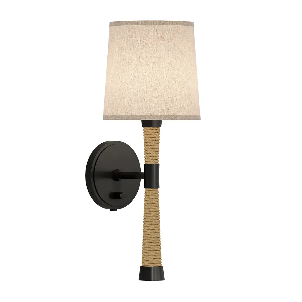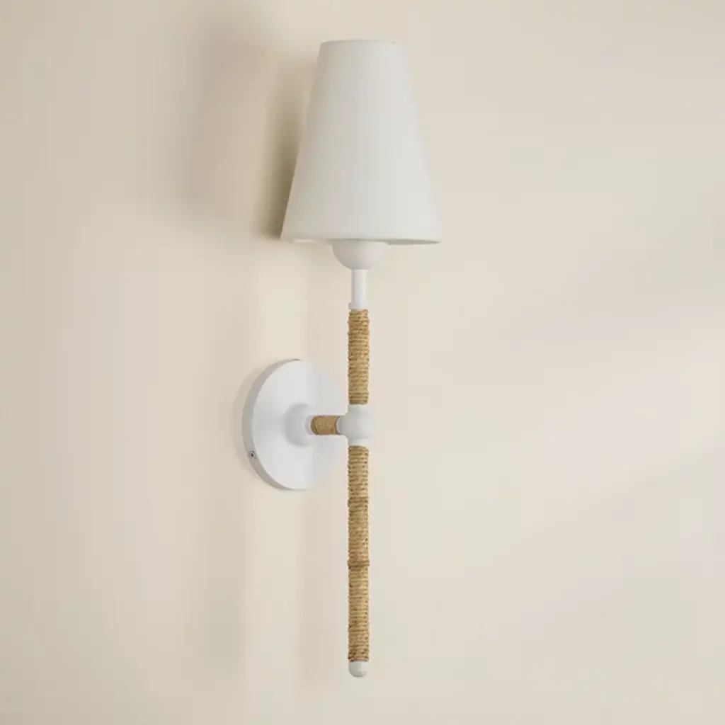The elements of the coast are beautifully distilled in the home-defining design of the Mariana Wall Sconce from Mitzi – Hudson Valley Lighting. Designed by Megan Molten, the hallway, entryway, or living space are all great candidates for this trim piece. Mounted with a compact backplate, one’s eyes focus on the rich warmth and detail of the hand-wrapped rattan stem. The ring outlines of the rattan lead one to the crisp cone shade above. Crafted in linen, the shade eases glare and softens ambient light toward surfaces close by.
