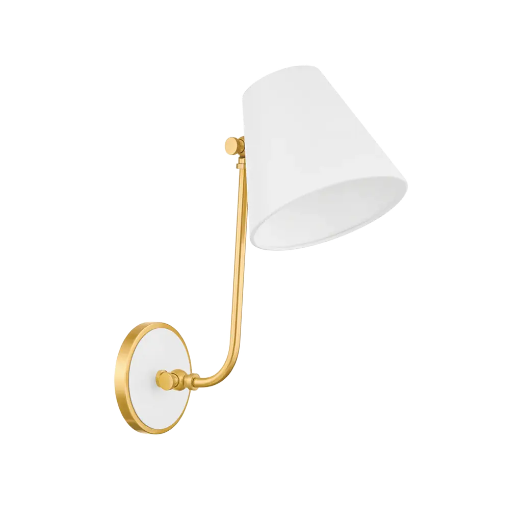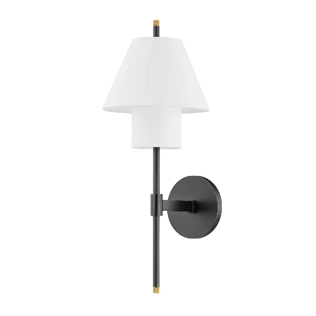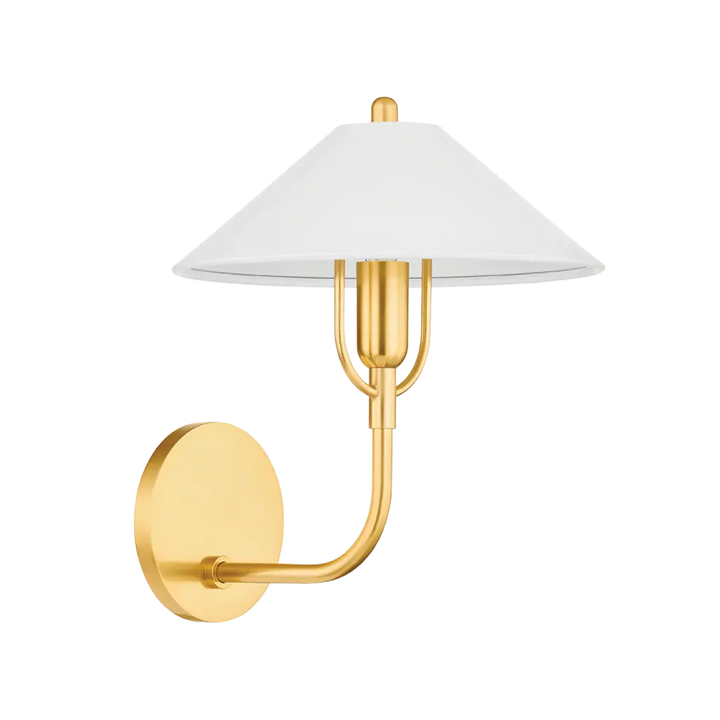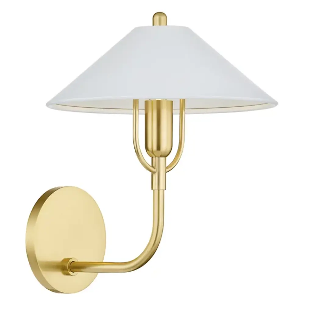The Mariel Wall Sconce from Mitzi is a contemporary take on a classic design, seamlessly blending tradition with transitional sophistication. The shaded silhouette of this sconce reimagines the harp holding the metal shade, turning it into a distinctive design element. The graceful curve of the harp creates a halo-like effect around the socket cup, adding an ethereal touch to the aesthetic. A rounded finial crowns the metal shade, providing a finishing touch.