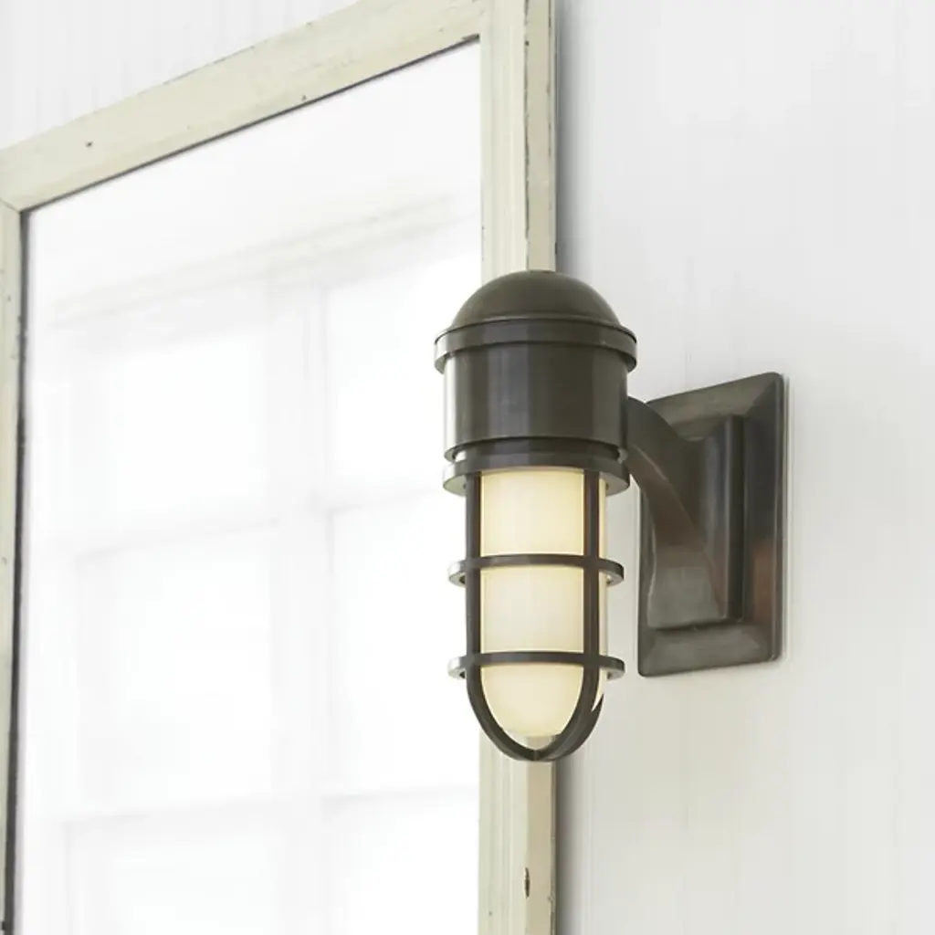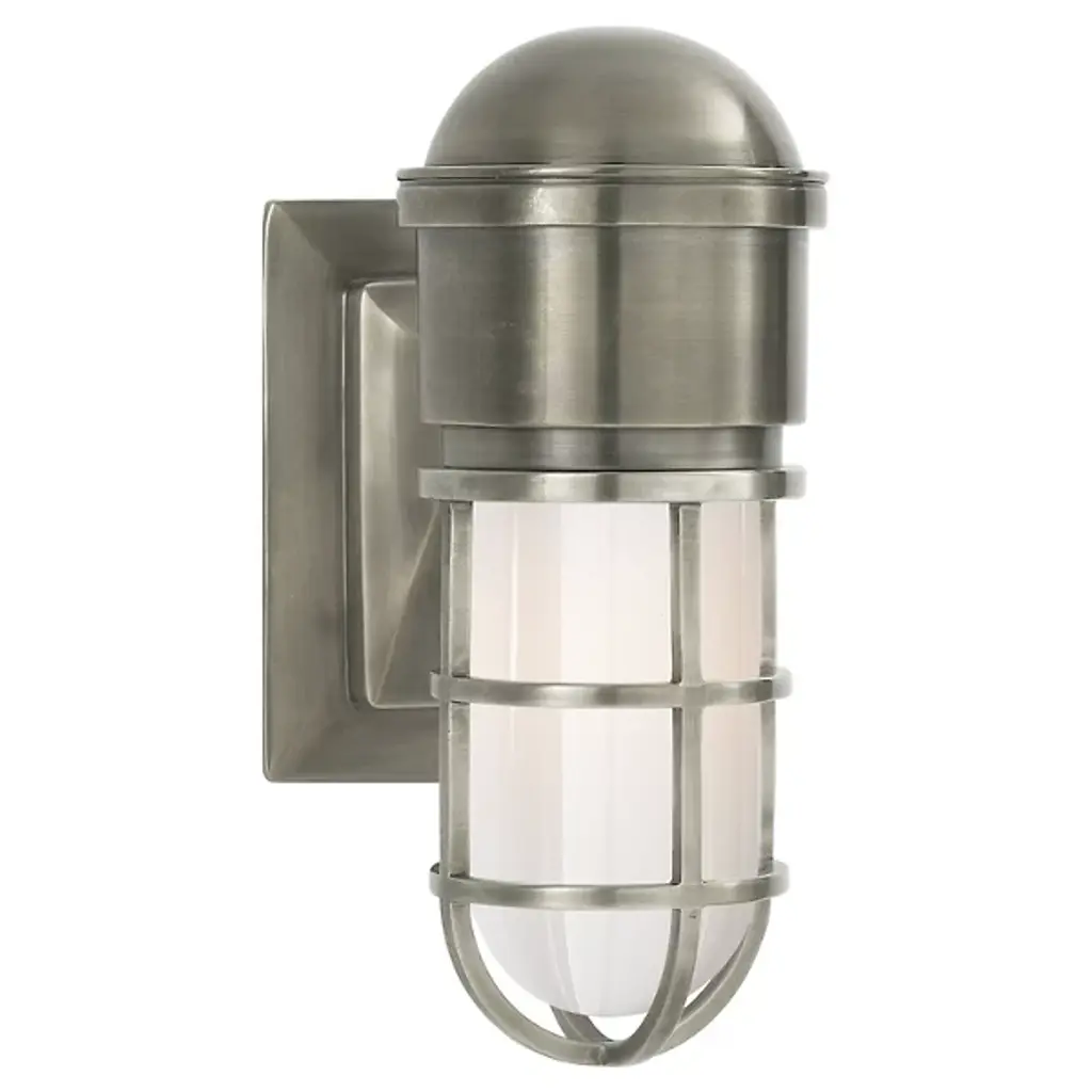 Visual Comfort Signature, formerly known as Visual Comfort,'s Marine Wall Sconce blends industrial and contemporary to create a sleek and iconic wall light. This damp rated darling has a metallic finish that gives off a subtle sparkle. The Marine Wall Sconce features a White glass shade that diffuses light and offers a nice glow to outdoor areas.