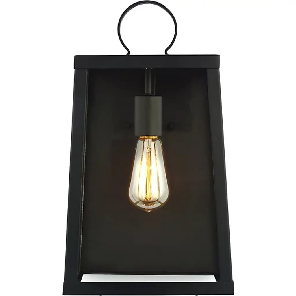 The Marinus Outdoor Wall Sconce by Visual Comfort Studio, formerly known as Sea Gull Lighting, will bring a stylish sense of subtlety and minimalism to your outdoor space. Featuring clean, lantern-inspired lines, this fixture shows off the bulb within through Clear glass panels. A loop accent atop finishes out the piece.