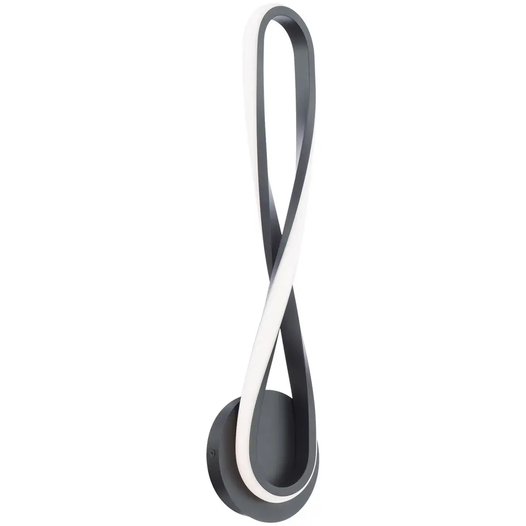 The Marise LED Wall Sconce by dweLED blends the smooth shape of the evocative figure 8 with energy-efficient technology for a functional piece of art. This sculptural piece rests on the wall with a compact round backplate. The twisted silhouette of this wall sconce reaches out beyond the anchoring backplate for an airy display. A silicone diffuser wraps around the looping metal frame to provide an even, ambient wash of illumination in all directions. A balanced blend of form and function, this design captures the eye while creating an inviting atmosphere around it.