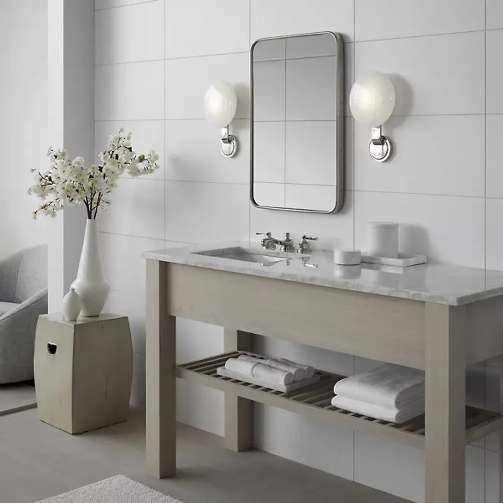 The Marisol LED Wall Sconce from Visual Comfort Signature effortlessly blends timeless elegance with contemporary flair, drawing inspiration from chic jewelry. Crafted with metalwork, each piece securely holds white glass shades, creating a stunning ensemble of sconces, flush mounts, and bath bars. Champlimaud's sophisticated and charming design casts a warm and inviting glow, making it a perfect addition to any space, be it a bathroom, bedroom, or kitchen, where it will enhance the ambiance with its refined beauty.
