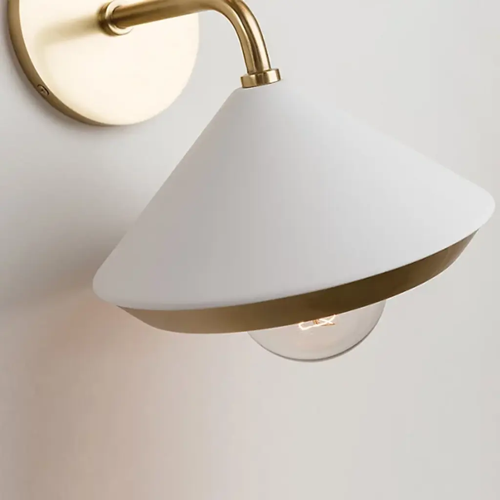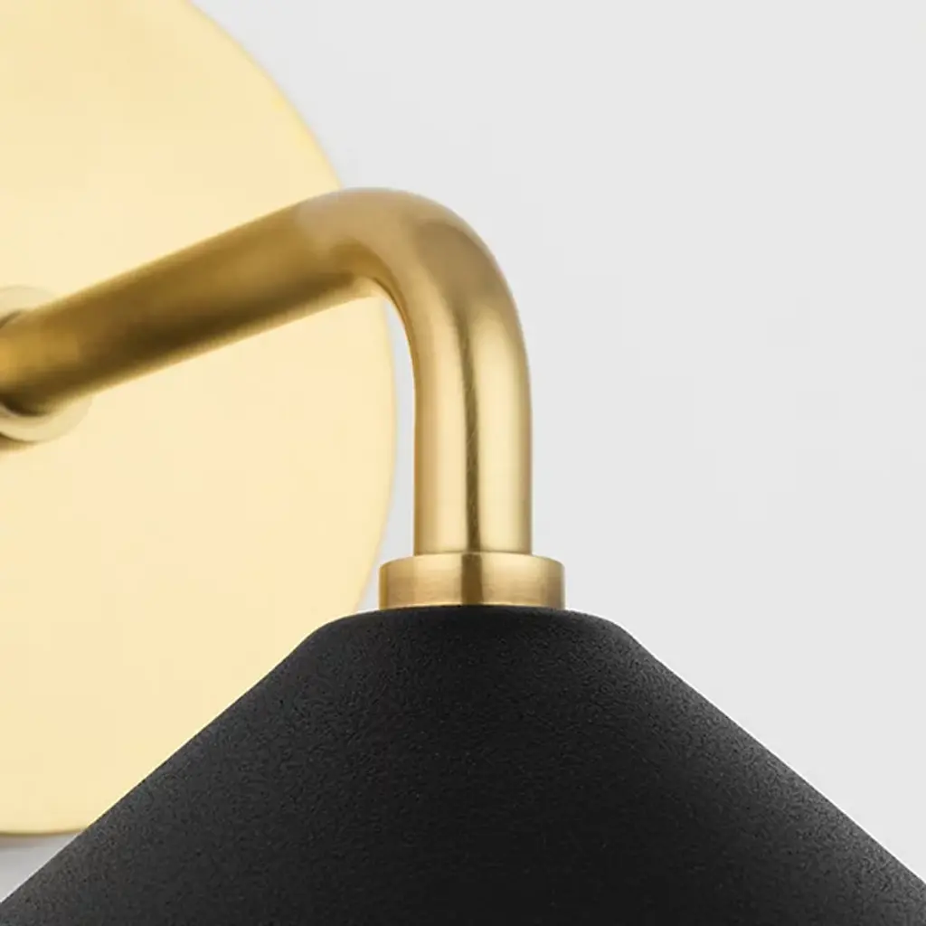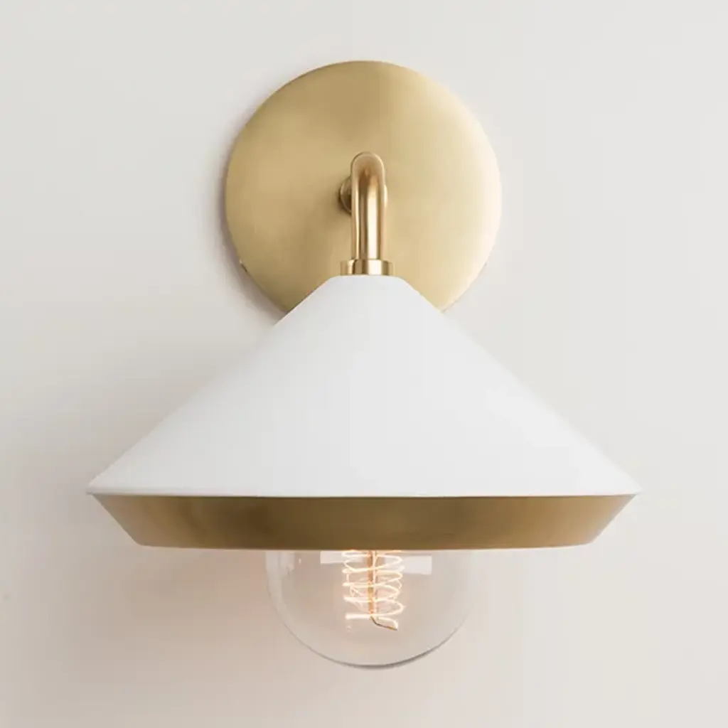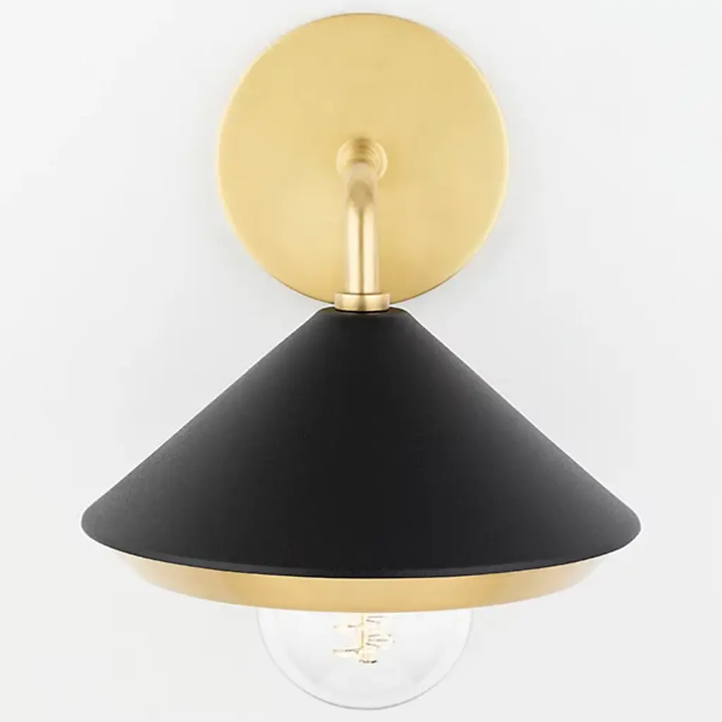The Marnie Wall Sconce by Mitzi makes a statement in spaces big and small. A sophisticated 2-tone design, it features a Metal hood shade with Black or White accents. Under the hood, a globe lamp provides a downward illumination in a kitchen eating nook or flanking a fireplace.