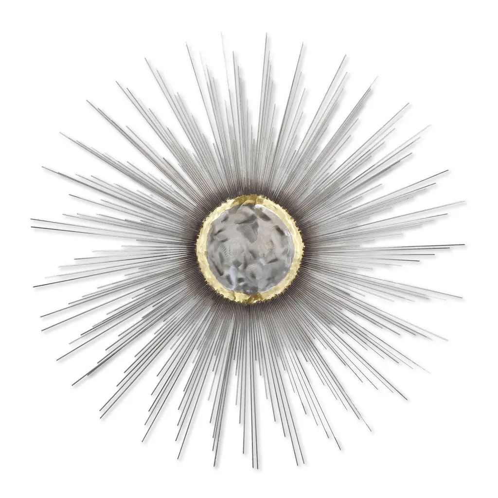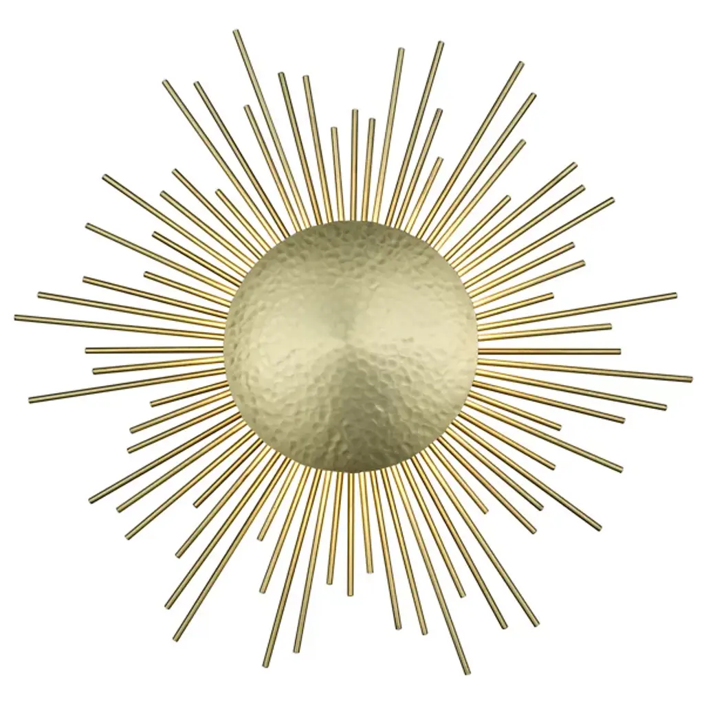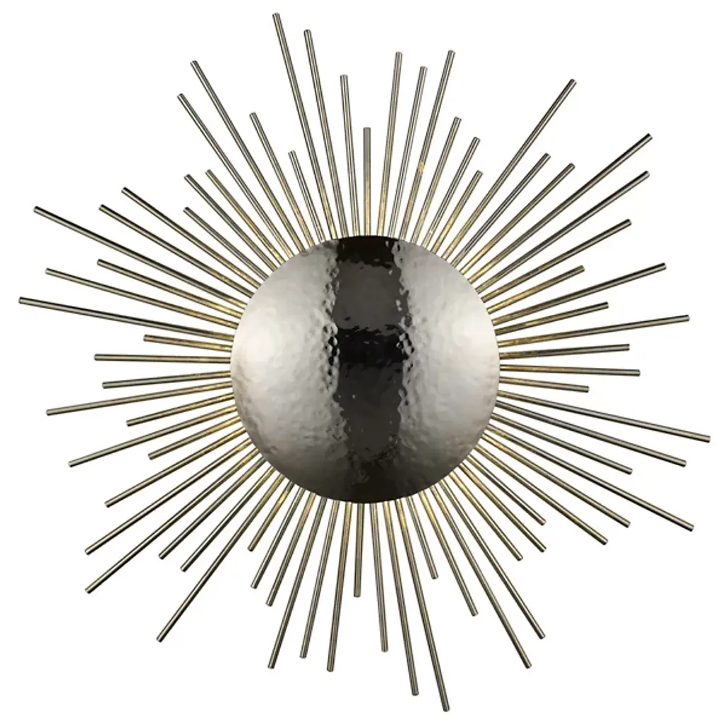 Bursting rays of energy and vibrancy. The Marquee St. Wall Sconce/Flushmount by Avenue Lighting breathes new life into your décor with its sun-inspired spherical shade embellished with rods of various length. The surface of the round shade displays a hammered texture for unique grooves the light can play off of. Crafted from crystal and iron, this fixture's cheerful yet upscale appeal is only rivaled by its warm and welcoming illumination, making it suitable for a kitchen, dining space or foyer.