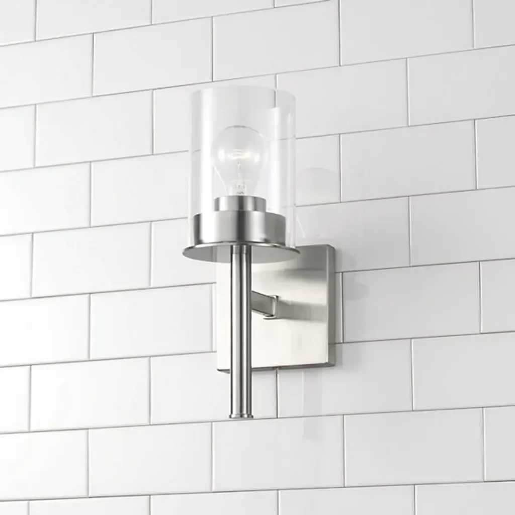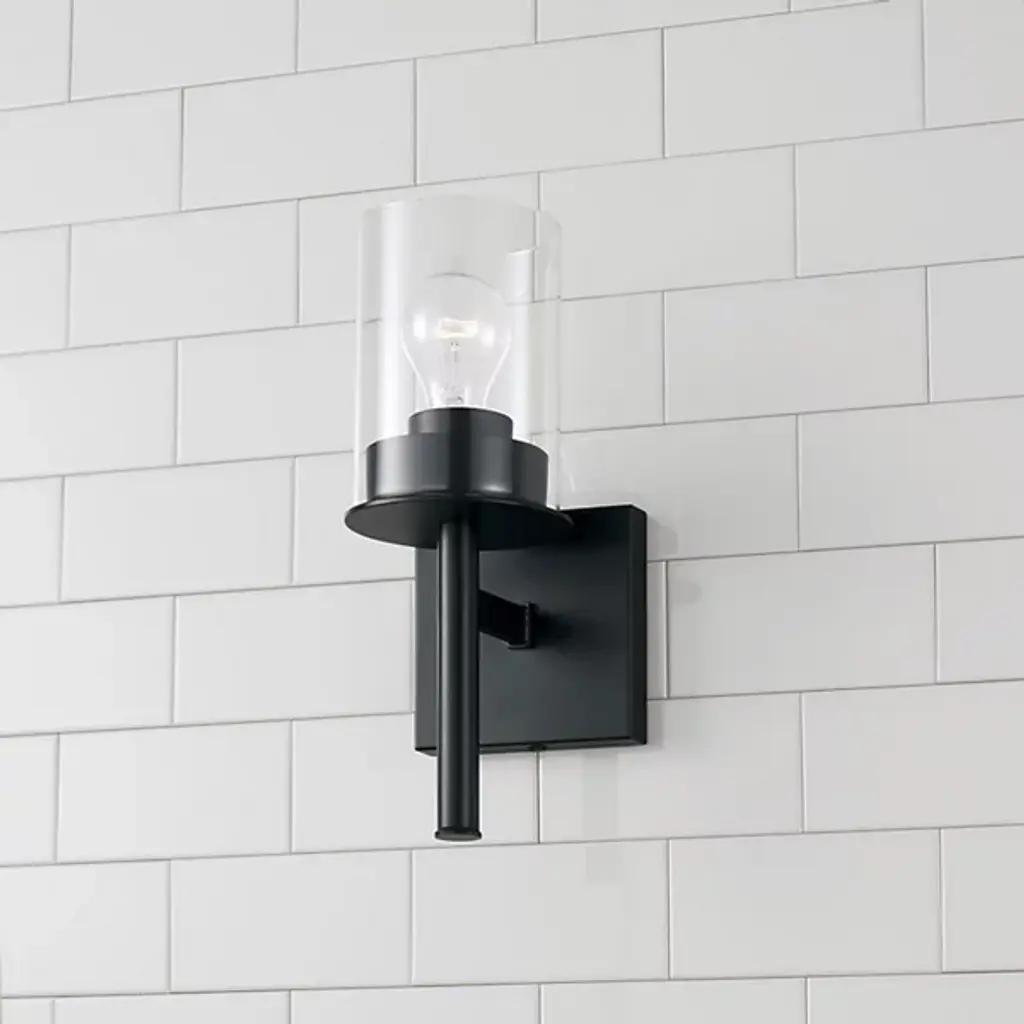 The Mason Wall Sconce is a transitionally styled piece of luxuriant lighting presented by Capital Lighting. Also drawing from mid-mod inspiration, clean lines and a refined finish accents the designer details for ultimate style versatility. Display the Mason on walls that will benefit from the elevated style and pleasant illumination experience.