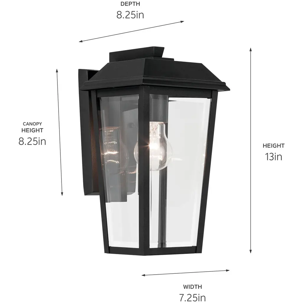 Mathus 13 inch 1 Light Outdoor Wall Light with Clear Glass in Textured Black