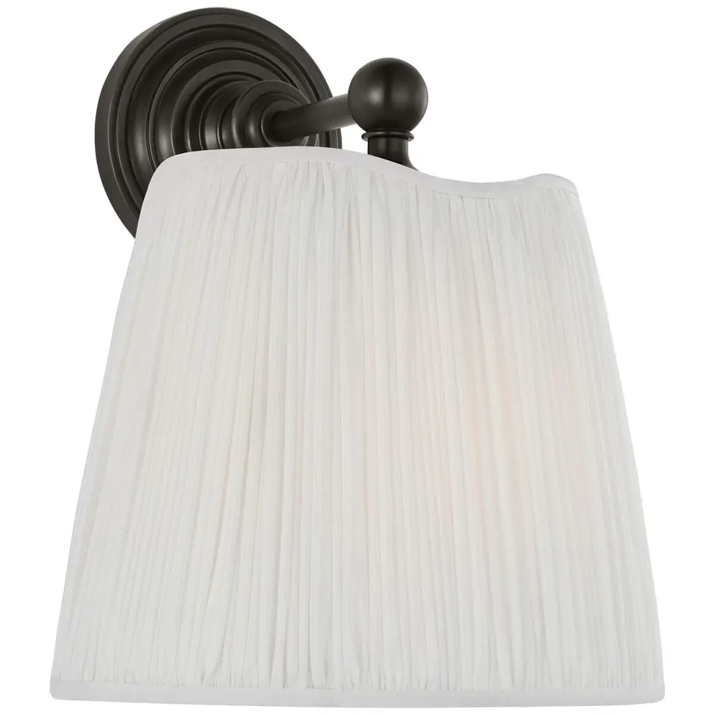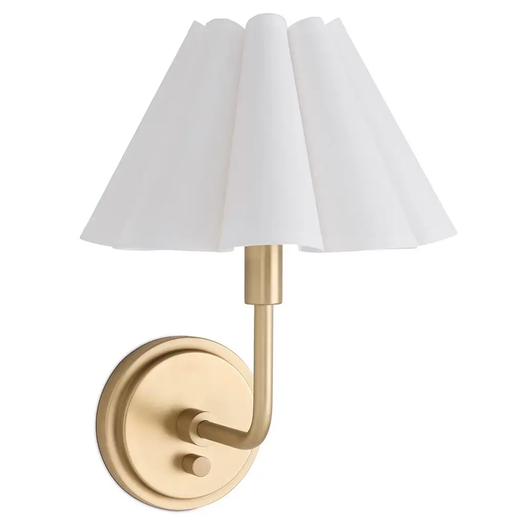 Timeless design, distinctive details, and impeccable quality come together in Amber Lewis' cool California take on lighting. Traditional elements meet a modern silhouette in the Matos sconce. With its stepped backplate and pleated fabric shade, this wall sconce brings a tailored touch to any space. Style one on its own or in pairs beside a vanity or bed for a refined, softly layered glow.