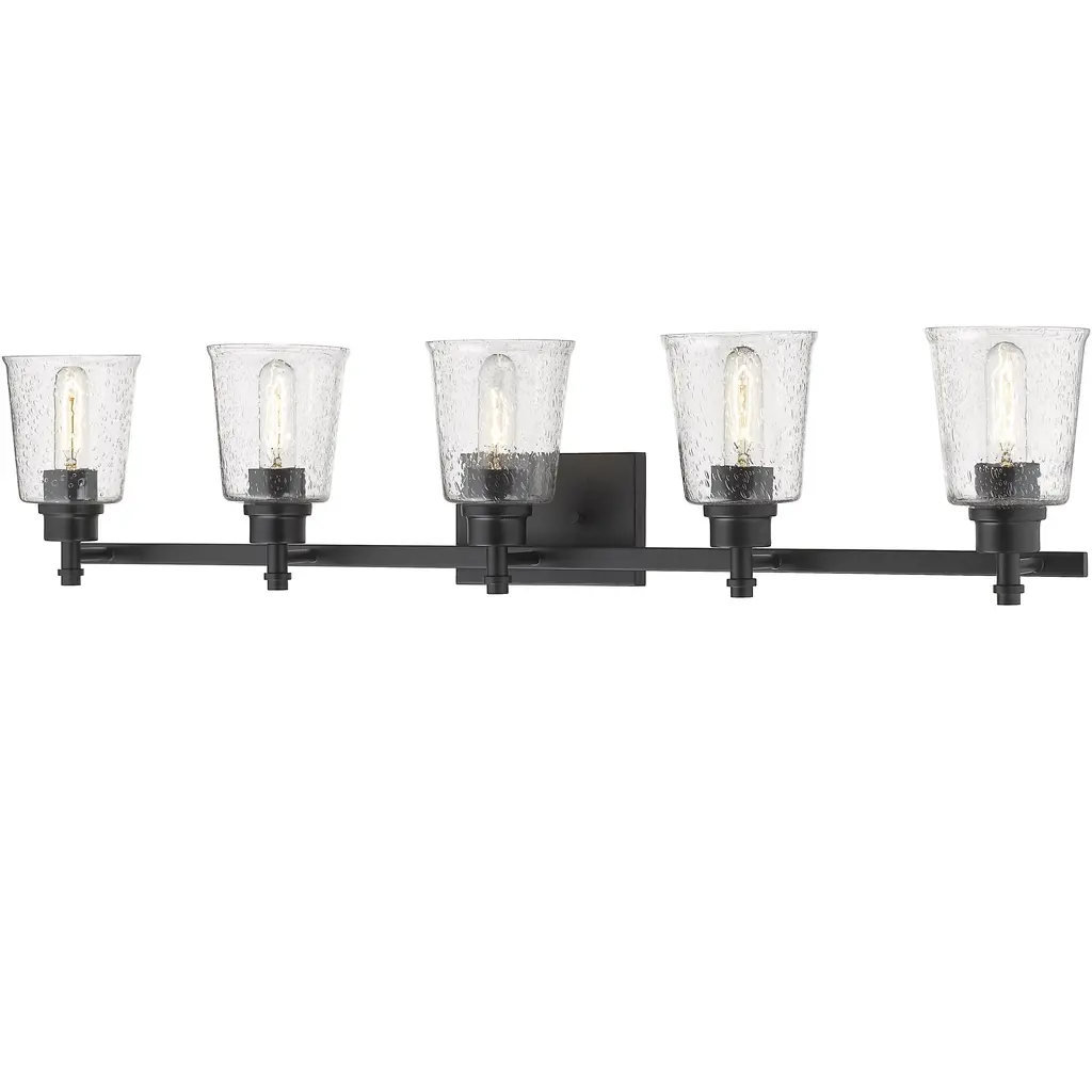 Hip and Airy, Matteson is at home in an Urban Loft or a Modern Farmhouse. The tapered clear seedy glass shades sit effortlessly between the bold knurled knobs giving sophisticated credit to both form and function.