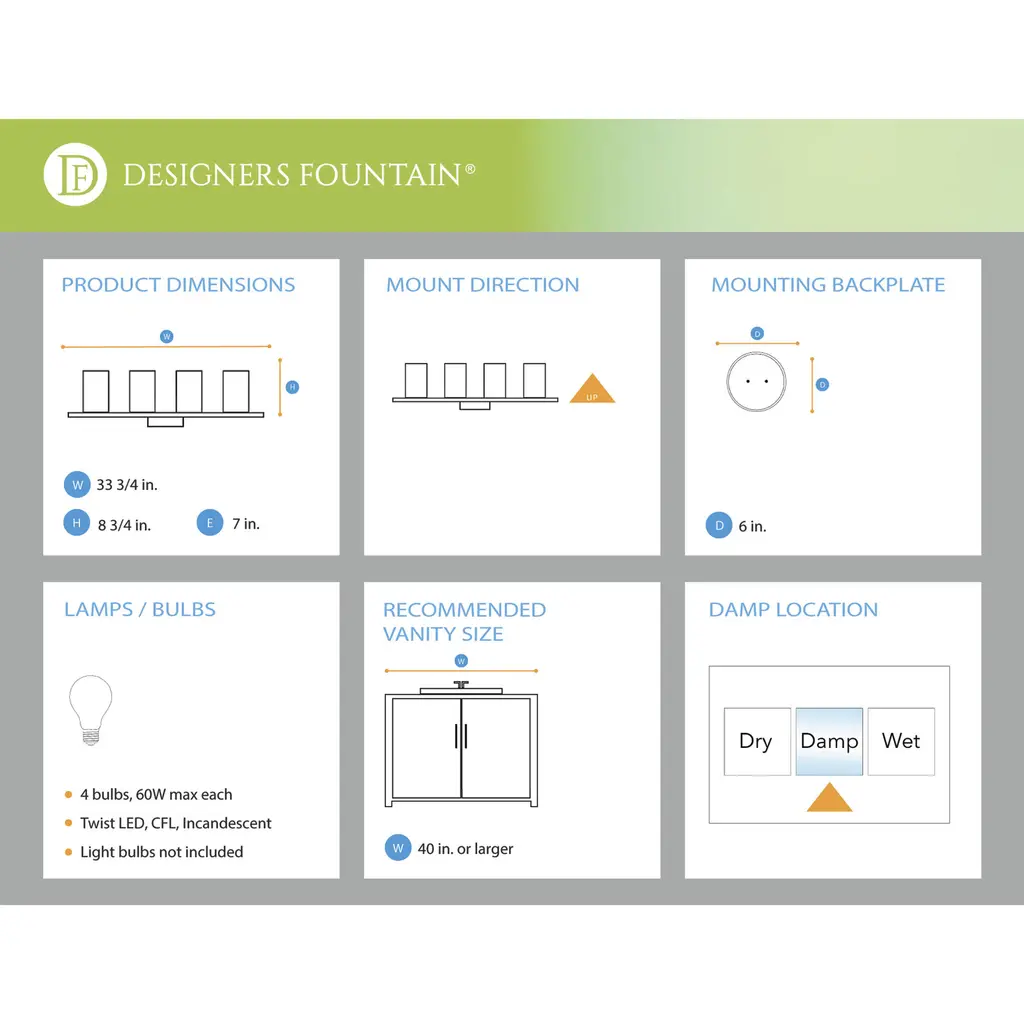 Matteson 4 Light 33.75 Inch Matte Black Bath Bar Wall Light