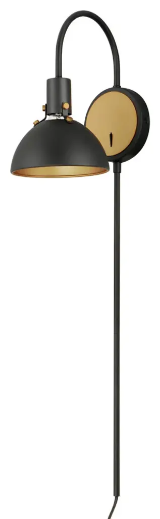 One Light Wall Sconce from Dawn collection in White/Satin Brass finish. Number of Bulbs 1. Max Wattage 60.00 . No bulbs included. Sockets are suspended above a metal spun dome in your choice of Black or White with Gold accents or Satin Nickel with Black accents. A clean and simple approach to modern or transitional lighting, the opening allows light to shine through the opening atop while providing functional light below. This break in the two parts is supported with straps and decorative rivets in complimentary finishes for a subtlety tasteful two-tone finish. A coordinating pin-up wall sconce offers a bedside application to this design with integrated switch on its back plate and two feet of cord cover that can be removed and hardwired per your preference. No UL Availability at this time.